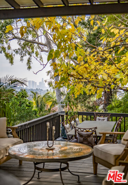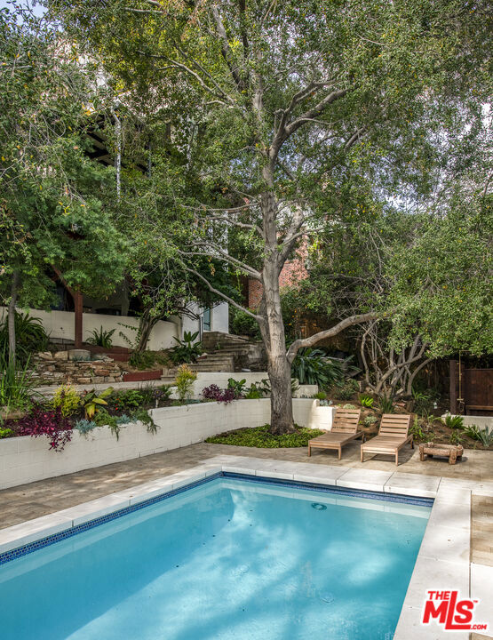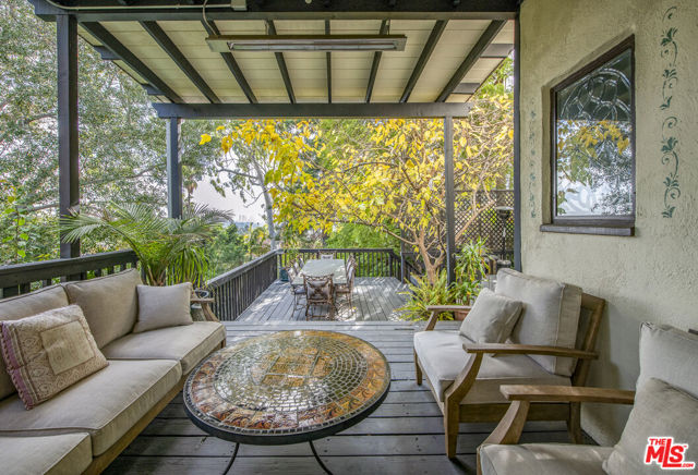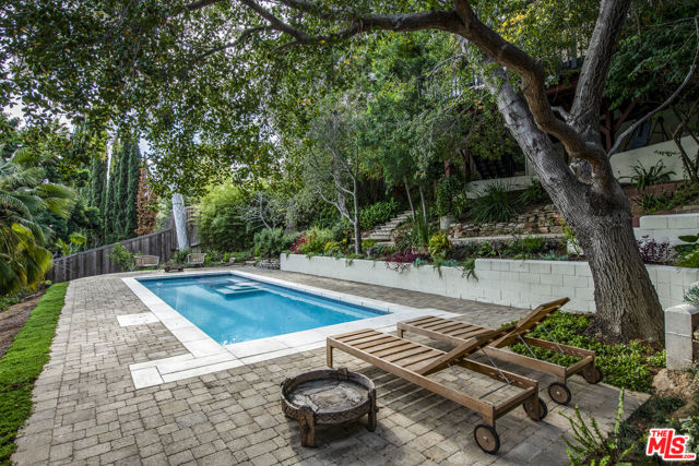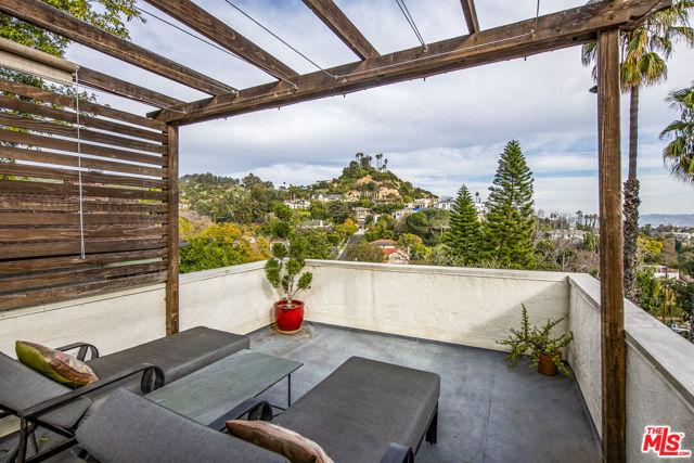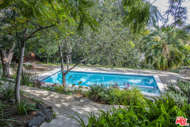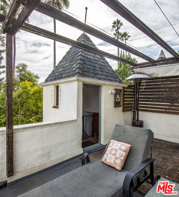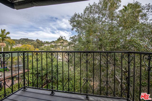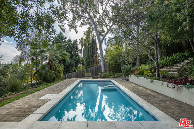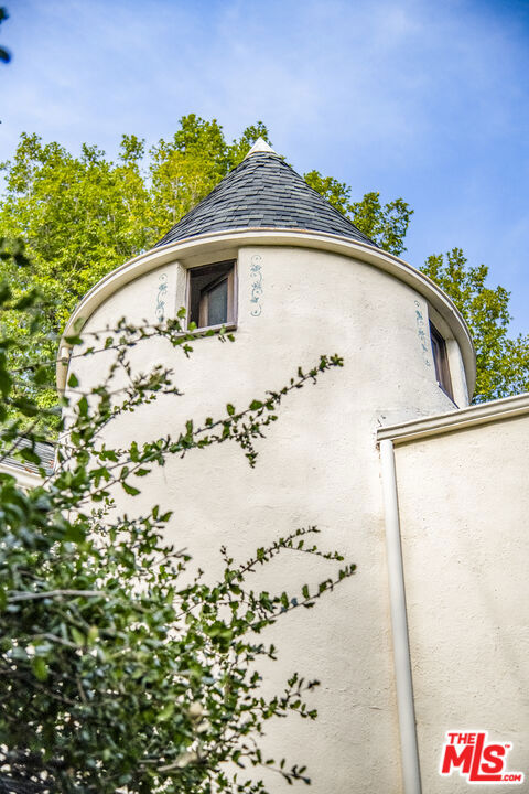 Nestled privately in a cul-de-sac in the hills of Los Feliz, steps from the entrance to Griffith Park, this 1924 French Normandy-style residence has a gated intercom entrance and huge mature trees giving you privacy both inside and outside. This 3-bed, 3.5-bath home (1 bedroom currently set up as a gym) has been masterfully remodeled and upgraded, including wired ethernet throughout the house with high-speed internet for an easy work-from-home lifestyle. Natural light floods the space, especially the master bedroom, boasting a balcony and en-suite bathroom. The living room features vaulted ceilings, a Batchelder tile gas fireplace, and exquisite hardwood and Magnesite flooring leading to a striking turret. Walk from the large chef's kitchen French doors to an open and spacious deck with a cozy heated area just outside. Ideal for outdoor entertaining with breathtaking Downtown views. Enjoy panoramic skyline views from the large rooftop deck. The lower garden area boasts a newly constructed 35ft heated swimming pool and spa. AVAILABLE FULLY FURNISHED IMMEDIATELY FOR SHORT TERM LEASE UNTIL AUGUST 2026.