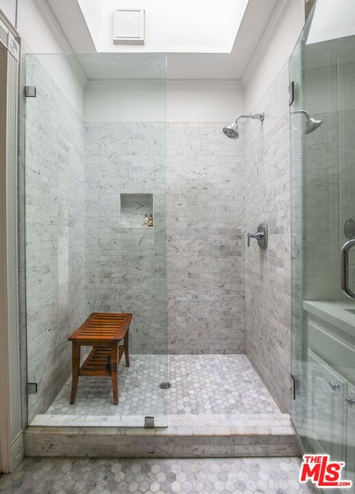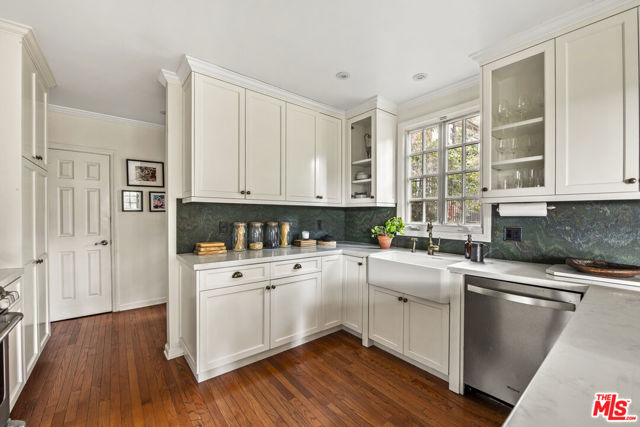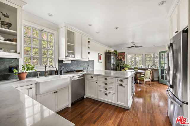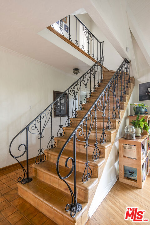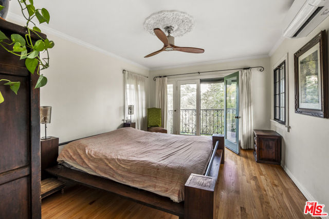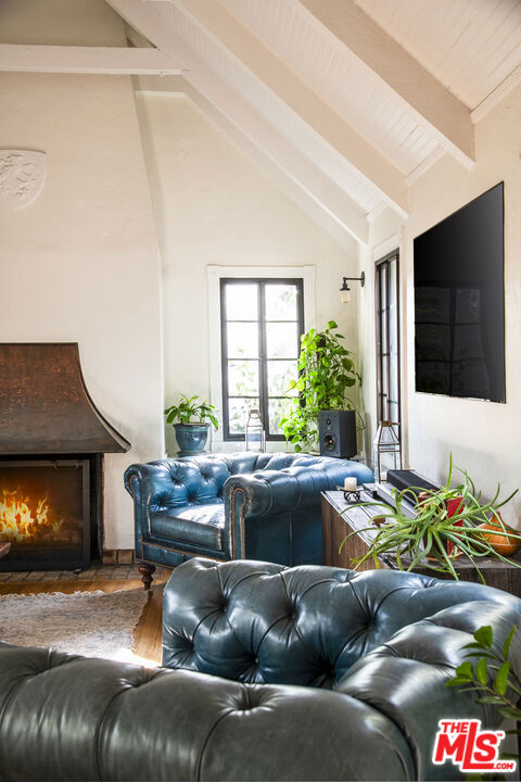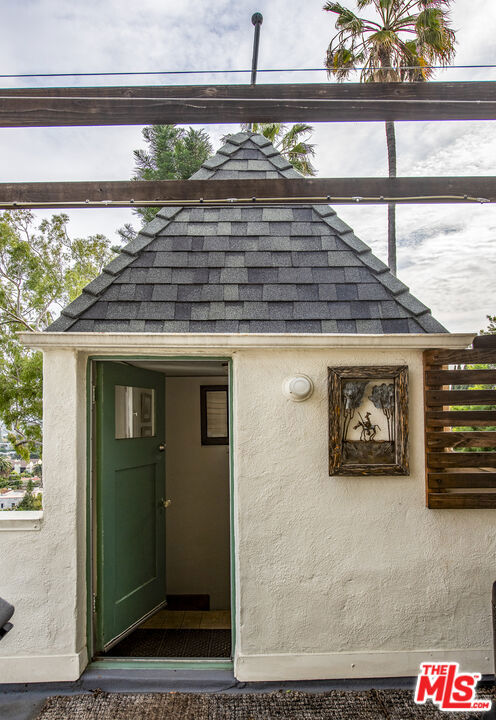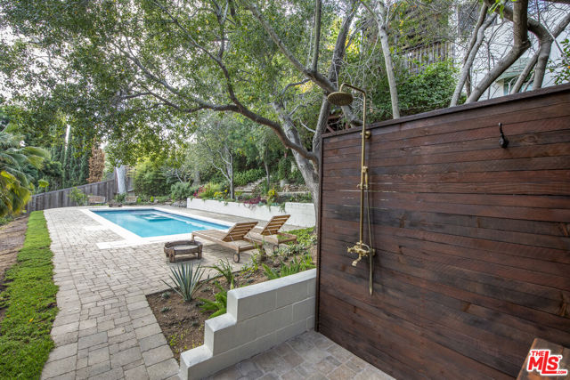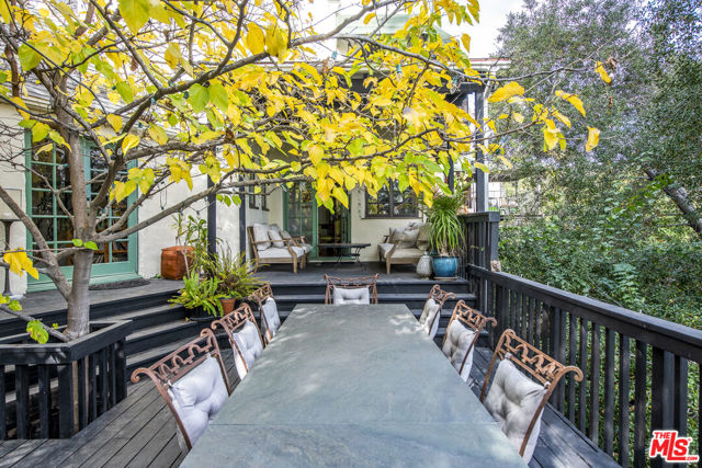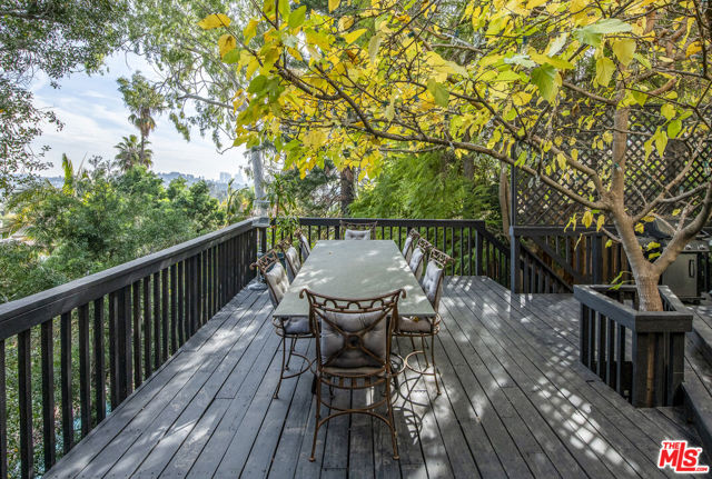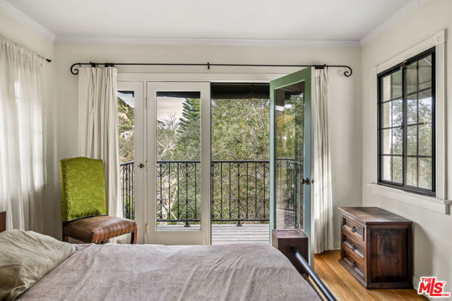 Nestled privately in a cul-de-sac in the hills of Los Feliz, steps from the entrance to Griffith Park, this 1924 French Normandy-style residence has a gated intercom entrance and huge mature trees giving you privacy both inside and outside. This 3-bed, 3.5-bath home (1 bedroom currently set up as a gym) has been masterfully remodeled and upgraded, including wired ethernet throughout the house with high-speed internet for an easy work-from-home lifestyle. Natural light floods the space, especially the master bedroom, boasting a balcony and en-suite bathroom. The living room features vaulted ceilings, a Batchelder tile gas fireplace, and exquisite hardwood and Magnesite flooring leading to a striking turret. Walk from the large chef's kitchen French doors to an open and spacious deck with a cozy heated area just outside. Ideal for outdoor entertaining with breathtaking Downtown views. Enjoy panoramic skyline views from the large rooftop deck. The lower garden area boasts a newly constructed 35ft heated swimming pool and spa. AVAILABLE FULLY FURNISHED IMMEDIATELY FOR SHORT TERM LEASE UNTIL AUGUST 2026.