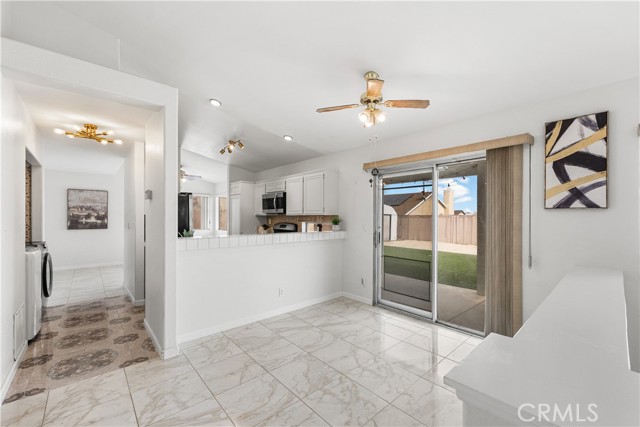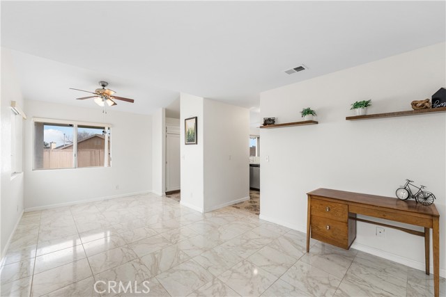 Located in desirable West Rosamond, this beautifully maintained 3-bedroom, 2-bathroom home is nestled in a cozy, established neighborhood and offers comfort, space, and thoughtful updates throughout. Designed with a split-wing floor plan, the spacious primary suite is privately situated and features a large attached bathroom and generous closet space to accommodate all your personal storage needs. The interior has been freshly repainted, and portions of the flooring have been updated with a stylish mix of tile and premium vinyl plank flooring, creating a clean and modern feel. The kitchen has been refreshed with recently painted cabinetry, giving it a bright, updated look. This home offers two separate living spaces, providing flexibility for entertaining, relaxing, or creating a playroom or office. The front living room features a cozy fireplace as the focal point, perfect for cooler evenings. Step outside to a spacious backyard complete with a covered patio--ideal for outdoor dining and gatherings. The yard has been thoughtfully designed with low-maintenance landscaping, including turf and decomposed granite, offering both beauty and practicality. Conveniently located near shopping, schools, parks, and Edwards Air Force Base, this home combines location, layout, and lifestyle. Don't miss your opportunity to make it yours!