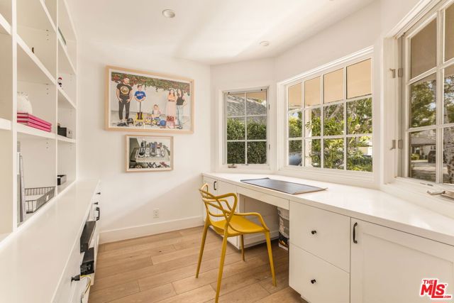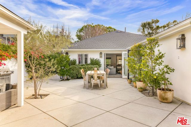 Prime Beverlywood single-story Traditional with 4 bedrooms and 2.5 baths on a quiet, pedestrian-friendly street. Updated and move-in ready, this light-filled home blends timeless character with modern functionality. Interiors feature wide-plank hardwood floors, abundant natural light, and a classic fireplace. The open kitchen and family room include a large center island, professional range with a statement hood, stainless steel appliances, farmhouse sink, skylight, and French doors that open to a private patio, ideal for entertaining or al fresco dining. The spacious primary suite offers direct patio access and a beautifully remodeled spa-like bath. Secondary bedrooms are generously sized, plus a dedicated den/office and separate laundry room. Additional highlights include central AC/heat, two-car driveway parking, and a private backyard surrounded by mature greenery. Ideally located near shopping and dining.