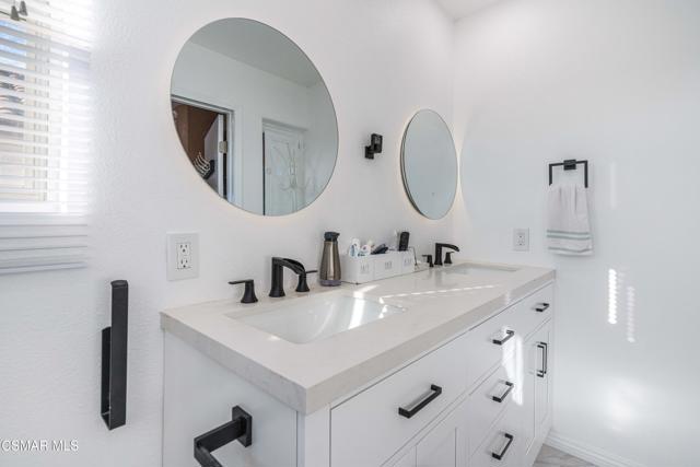 Don't Miss Your Chance!!! Beautiful curb appeal and a prime cul-de-sac location with stunning views. This home offers a warm and inviting interior featuring rich wood-like flooring and a gorgeous stacked-stone, double-sided fireplace with a custom mantle that enhances both the family and living rooms. High ceilings, neutral paint tones, and an excellent floor-plan create an airy and comfortable living space. The spacious kitchen boasts honey oak cabinetry, abundant storage, stainless steel appliances, and a convenient dining area just off the family room. A downstairs powder bath and laundry room add everyday convenience.Upstairs, you'll find new carpet in the main areas and wood-like flooring in the bedrooms. The lovely primary suite features vaulted ceilings and beautiful mountain views. The newly REMODELED primary bath feels like a private retreat with marble floors, a HUGE walk-in shower, dual vanities, and high-end fixtures. Two well-appointed guest rooms with mirrored closet doors and a beautifully REMODELED guest bathroom with walk-in marble shower and floor, and a custom vanity with luxury fixtures complete the upper level. The backyard has been freshly updated with new turf, a stamped and painted concrete patio, a white patio cover, and a charming seating area perfect for entertaining or relaxing. ADDITIONAL UPGRADES INCLUDE: new landscaping, epoxy garage floor, brand-new AC system dedicated to the garage, new water heater with instant hot water, whole-house water filtration system, and a finished garage ideal for projects. All of this sits in a fantastic cul-de-sac location close to shops, parks, schools, and more--a must-see home that truly has it all!