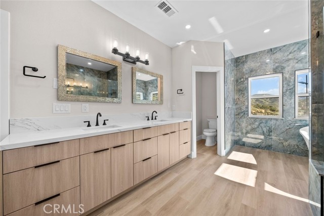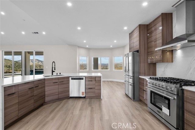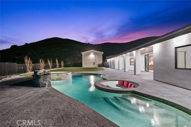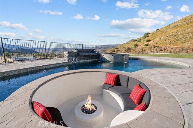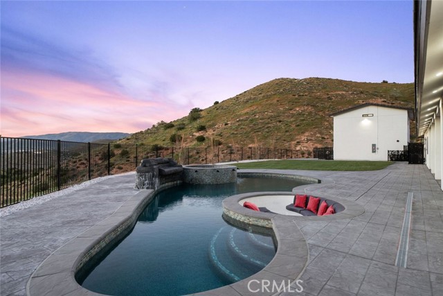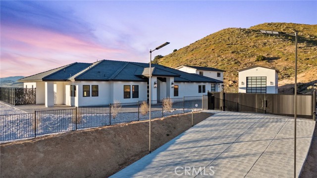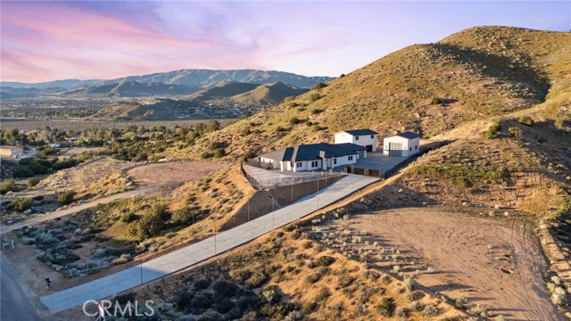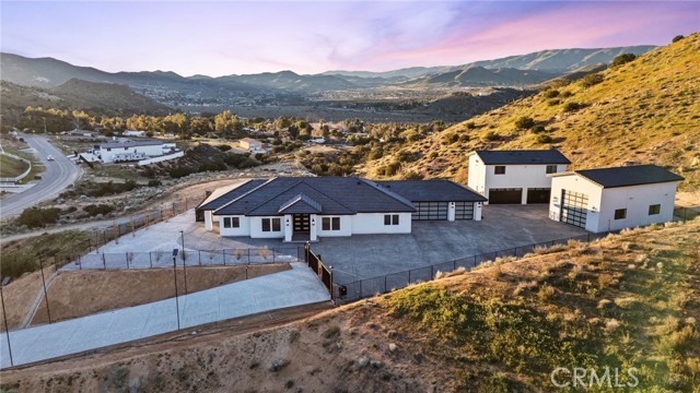 Welcome to this Stunning New Construction Home in Acton. This Home features 6 Bedrooms, a detached ADU with 4-car garage, a detached RV Garage, Pool, Spa, with fire pit inside the pool. Sweeping panoramic view from every window inside the house. Perched above the world with an eagle-eye perspective. A secluded sanctuary. Vary private and quiet. You will love the sunset views. Custom Built Kitchen Cabinets, Stainless Steel Appliances, Quartz Countertops, Large Kitchen Island. Home features 12 Foot Sliding Glass Door opening the Entire Livingroom area to Covered Patio, Backyard, and the Pool and Spa. Great Place to Entertain. Grass Backyard with Pool and Spa with great sunset view. Upstairs is a Large Primary Suite with Double Door Balcony that overlooks the Backyard, Beautiful Double Door Balcony to Sit outside and enjoy the Sunsets. Primary Bath also features Soaking Tub with private view. Walk-in Shower. 4th Bedroom/Office 5th Bedroom. Double Door Entry to Home Theater with Theater lighting and Projection Screen. This Home Features a European Air/Heat with each room able to control it's on temperatures, 2 HVACs, 2 tankless Water Heaters, Completely Wired for Alarm, Cameras, Side by Side Laundry, Solar Panels, 8 Car Garage with Extra Storage. This Home is One of a Kind.