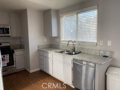 Great Investment property in central location of California City. Regular city sewage, off main road by Park, Hotel, Shopping and city bus lines. This is a dual unit duplex, both are (2) bedroom & (2) bath with a single car garage. There is washer/dryer hook up off patio to rear enclosed yard. Front entrance is at spacious living room with wood flooring through out. Formal dining nook at kitchen featuring granite counters, stainless steal appliances and recess lighting. Master bedroom has raised panel doors at wardrobe closet & private bath + shower. Small room off hall with storage cabinets and white blinds windows. Both Units are currently leased so buyers agent must set appointment. Call Now!