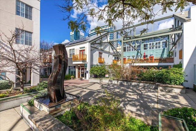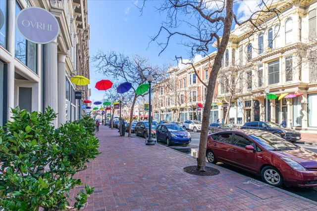 TRULY a Live/Work loft at Market Square in Old Oakland offering a unique blend of residential comfort and business flexibility. Floor-to-ceiling windows provide abundant natural light, and a private double door street entrance is ideal for a storefront or any workspace of your dreams. The main level features a full kitchen with stainless steel appliances, full large spacious bathroom, and open living area. Brand new HVAC System and microwave. A spiral staircase leads to the loft level, perfect for a bedroom, office, or studio with walk-in closet, an additional closet with stackable washer/dryer hookups, and rear access leading to the rooftop deck. The rooftop will be perfect timing for BBQ'ing and relaxing on the lounges after work. Located just one block from Swan's Market, Sana'a Cafe, Blue Bottle Coffee, and the historic Ratto's International Market & Deli. The popular Friday morning farmers market is a wonderful way to kick off the weekend. Community amenities include gated garage parking (1 space) with its own EV charger, fitness center, sauna, steam room, business center, conference room, outside zen bamboo courtyard, and rooftop deck with SF Bay views. Close to Jack London Square, Lake Merritt, BART, and access to most freeways. Walk Score 98. Must See!