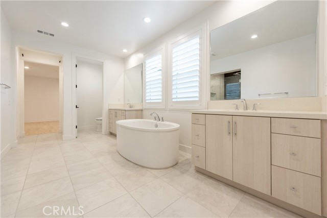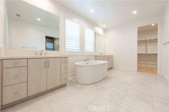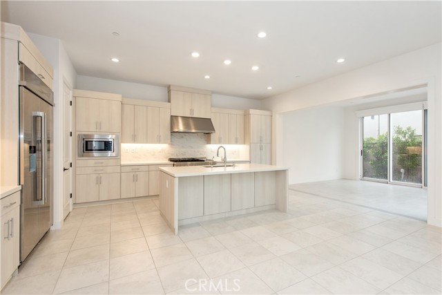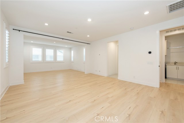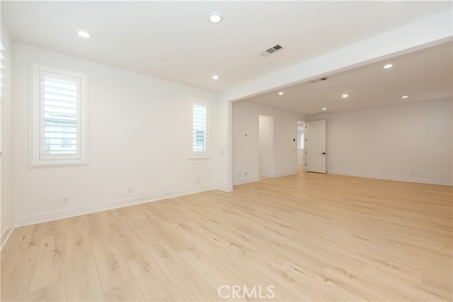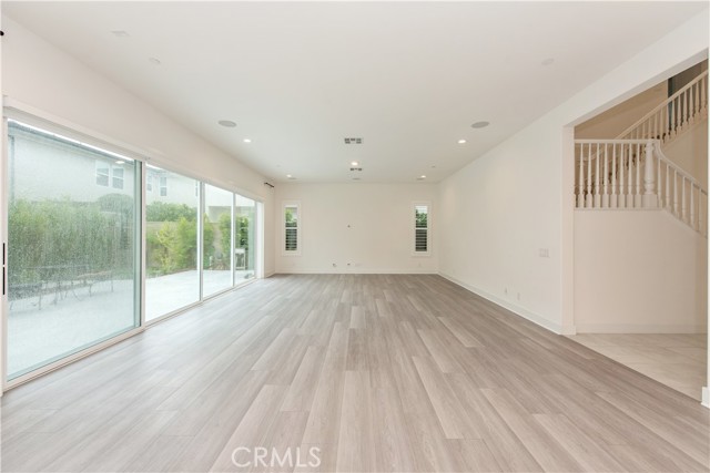 This well-designed two-story home offers 5 bedrooms and 5 bathrooms across approximately 3,572 square feet, located in the newest Meadows community in Lake Forest. The layout is comfortable and practical, with recent interior upgrades and a desirable orientation facing the community pool and clubhouse. The first floor features a spacious open living area where the living room, dining space, and kitchen connect seamlessly. The former outdoor living area has been fully enclosed and converted into a formal dining room, expanding the interior and creating a noticeably larger main living space. This change results in a more open and functional living room that works well for daily living and entertaining. The kitchen includes a center island, ample cabinetry, and a walk-in pantry. Wood flooring has replaced carpet throughout the living room, dining area, kitchen, and first-floor bedroom, giving the home a clean, modern look. A first-floor bedroom with a full bathroom provides flexibility for guests, extended family, or a home office. A drop zone near the garage adds everyday convenience. Upstairs, the home offers a spacious primary bedroom with a walk-in closet and a well-appointed bathroom featuring a soaking tub and separate shower. A central loft provides flexible space for a family room, study, or play area. Additional bedrooms are thoughtfully arranged to provide comfort and privacy, with easy access to bathrooms and the laundry area. Situated on a premium lot in the community, the home faces the community pool and clubhouse, offering open views and easy access to neighborhood amenities. Residents enjoy well-maintained common areas, a welcoming community setting, and a convenient location close to shopping, dining, parks, and schools.