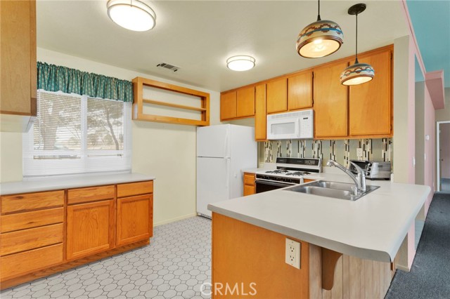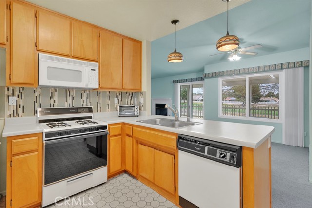 Enjoy golf course living in the heart of Silver Lakes! This home features two large primary suites, and each one has its own private bathroom. This setup is great for guests, extended family, or extra privacy. The open floor plan feels bright and welcoming with lots of natural light. The living room has a cozy fireplace, perfect for relaxing. Sliding doors lead to a large wraparound porch that runs along most of the home. It’s a great space for morning coffee, outdoor meals, or enjoying the peaceful golf course views. The kitchen opens to the dining and living areas, making it easy to cook, gather, and entertain. There is an attached garage with laundry located inside the garage for added convenience. This home is just steps from the Pro Shop and the Silver Lakes Restaurant, making it easy to enjoy dining and golf. Silver Lakes is a private HOA community located between Barstow and Victorville. Amenities include a 27-hole golf course, two private lakes for boating and fishing, clubhouse, restaurant, pool, spa, fitness center, tennis and pickleball courts, parks, equestrian facilities, and RV storage.