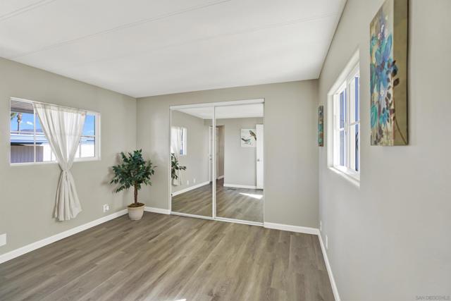 **LAND OWNED – 55+ Community in Sierra Vista Park!** Own the land in this highly desirable senior community in Vista! This affordable 1 bedroom, 1 bathroom home is located in the well-maintained Sierra Vista 55+ neighborhood. Beautifully upgraded approximately two years ago, the home features bullnose corners, fresh interior and exterior paint, vinyl flooring with updated baseboards, recessed lighting, and a remodeled kitchen with soft-close cabinetry, quartz countertops, stainless steel appliances, new sink, and disposal. Roof was recently resealed. The detached shed conveys and functions as a full laundry room with hookups plus additional storage. Low HOA dues of $275/month include water, sewer, trash, and basic cable. Community amenities include clubhouse, billiard/game room, swimming pool, spa, exercise room, and library. Park improvements include gas and electric system upgrades to each unit, new street lighting, and freshly paved roads. Low-cost RV parking available. Conveniently located near shopping, dining, and all that Vista has to offer. A great opportunity for affordable, land-owned senior living in North San Diego County. Located in the desirable city of Vista in North San Diego County, this property offers the perfect blend of small-town charm and everyday convenience. Enjoy a mild coastal climate, scenic rolling hills, and a strong sense of community. Vista features vibrant downtown dining, breweries, shopping, and year-round events, along with outdoor attractions such as Brengle Terrace Park, Alta Vista Botanical Gardens, and the popular Moonlight Amphitheatre. Convenient access to Hwy 78, I-5, and I-15 provides easy commuting, while North County beaches are just a short drive away. An ideal location offering lifestyle, recreation, and value.