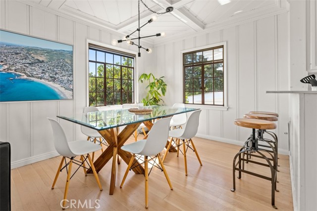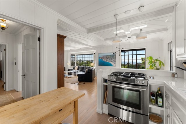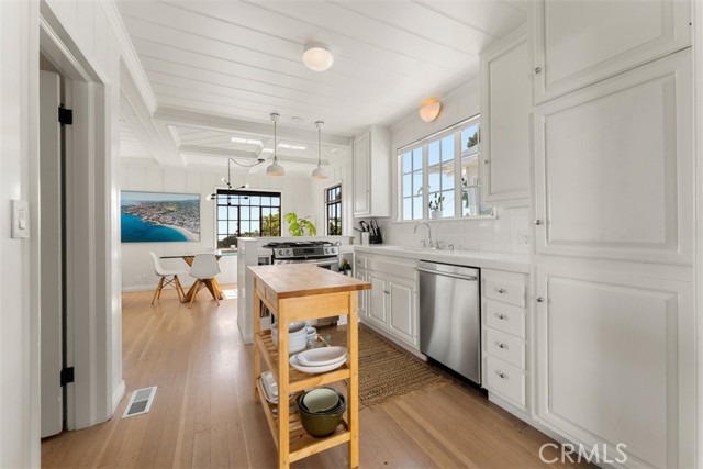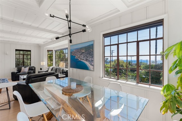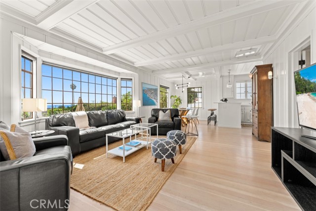Avail for 30+ days, call for longer leases. Completely furnished turnkey with air conditioning, bi-monthly house keeping and utilities included! Pristine Ocean View Cottage on a Large Corner Lot in the Heart of Laguna Village. Completely remodeled and restored in a fantastic location just three blocks up from Laguna's popular beaches, restaurants, shopping & Bluebird Park. The main house consists of 2 bedrooms and 2 baths with an inviting ocean view from the living room, dining room and kitchen. Restored white oak hardwood floors throughout, with carved wood beam ceilings and an updated gourmet kitchen offers a clean open layout. The guest house offers its own detached quarters featuring a skylight, queen size bed, kitchenette and a full bath with shower. This warm and inviting home and property is situated on a large corner lot with flagstone walkways, front porch, 2 patios, as well as a courtyard brick patio off the kitchen and master bedroom and fruitful plantain trees, citrus trees and an macadamia nut tree. The front patio offers the perfect spot for outdoor entertaining with beautiful ocean, Catalina Island and sunset views with an a adjacent patio fit with a 6 top teak table and chairs, and gas grill.
