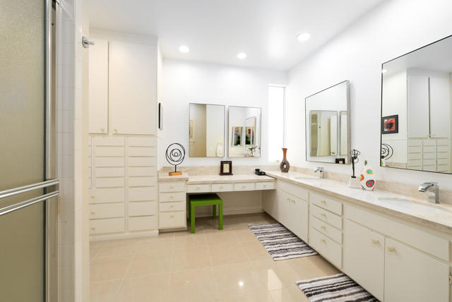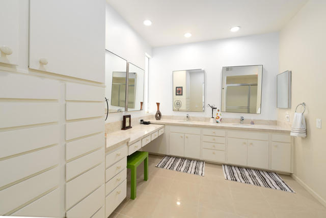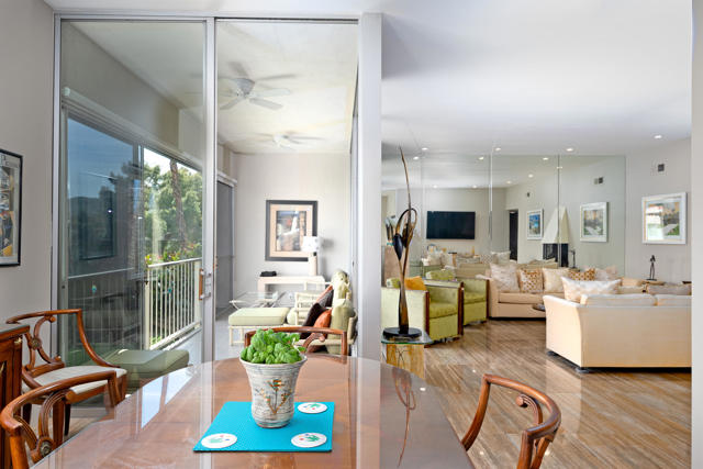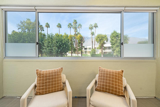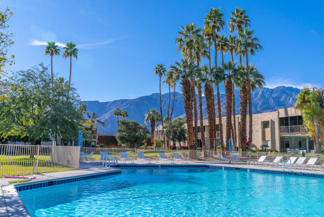 NON-OBSTRUCTIVE GOLF COURSE VIEWS!! This private, renovated, top-floor 2 bedroom/2 bath home is located in the Seven Lakes Golf and Country Club--also known as the ''Gem of the Desert''-- & is positioned above the HISTORIC 13th green where in 1968 President Eisenhower sank his only hole-in-one. Enjoy peaceful, quiet, non-obstructive views of the golf course and one of the seven lakes within the community. Play 18 holes of golf on the Ted Robinson designed golf course or socialize in the William Cody designed club house where dignitaries and Hollywood royalty have mingled for decades. Entering the home reveals 10 ft high ceilings and designer tile flooring. The extended terrace opens to a spacious living and dining area that is ideal for entertaining.Enjoy sunrises, sunsets and stunning 180-degree views of the San Jacinto and San Bernardino Mountains. The main bedroom suite offers a walk-in closet and oversized light-filled bathroom. Note that both bedrooms open onto an expansive sunroom with views of the mountains up to Southridge. A private two-car garage is also included in this special home.Perfect for full-time living or a seasonal investment property with a 24-hour guard gate, onsite HOA office, electric car charging stations, 15 heated pools and spas tennis/pickelball court. The William Cody designed clubhouse is private and offers neighbors enjoyment of a restaurant and bar.