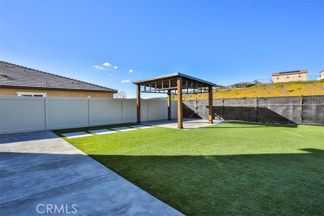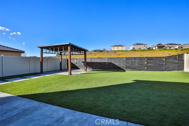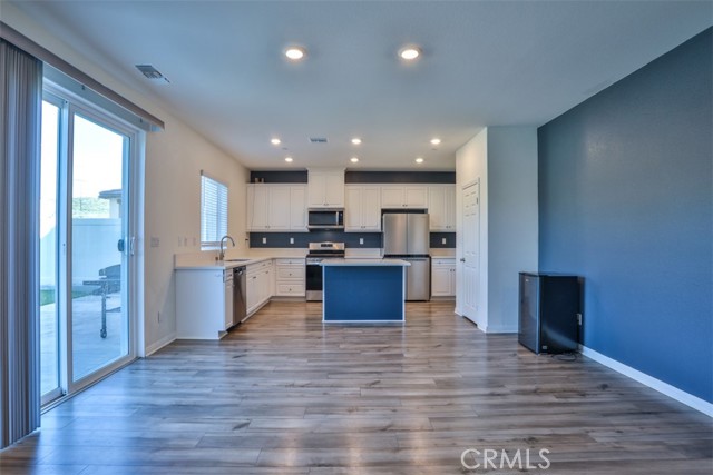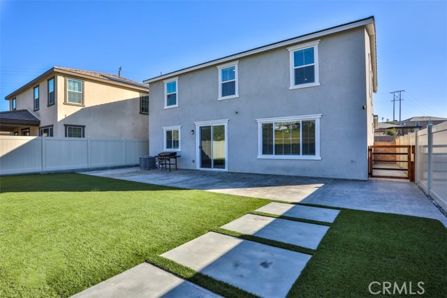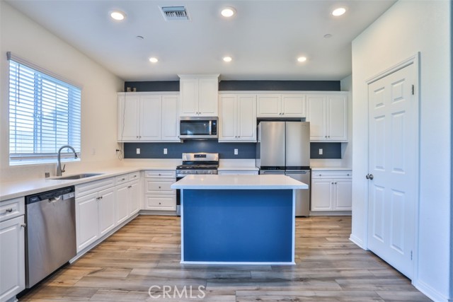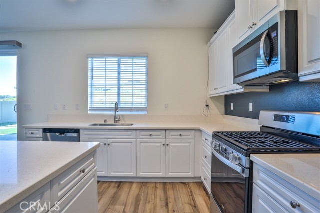 ~Where Modern Elegance Meets Family Comfort~ Located in the desirable Crimson Hills community of Lake Elsinore, this ENERGY STAR® qualified two-story home offers 5 bedrooms, 3 bathrooms, and approximately 2,528 sq. ft. of thoughtfully designed living space that blends style, comfort, and efficiency. The open-concept great room flows effortlessly into a chef-inspired kitchen featuring bright white thermofoil cabinetry, upgraded quartz countertops, and a spacious center island ideal for gathering. Stainless steel appliances—including microwave, range, dishwasher, and refrigerator—pair perfectly with a sleek single-basin sink and high-arc faucet. Recessed lighting enhances the bright, airy ambiance, while sliding glass doors open to the backyard for effortless indoor-outdoor living. Storage is thoughtfully integrated throughout, offering generous cabinetry, pantry space, spacious bedroom closets, linen storage, and a spacious under-stair storage area—ideal for seasonal décor and everyday organization. A main-level bedroom and full bath provide flexibility for guests, multigenerational living, or a private office. Upstairs, a versatile loft creates additional space for a media room, game area, or study retreat. The primary suite serves as a relaxing sanctuary, complete with a large walk-in closet and a spa-inspired en-suite bath featuring a soaking tub and separate shower. Three additional bedrooms, a secondary bathroom, and a conveniently located upstairs laundry room complete the upper level. Luxury vinyl plank flooring throughout the main living areas and upgraded quartz surfaces add durability with refined style. The backyard is designed for enjoyment, featuring a completed gazebo and low-maintenance landscaping, while the front yard offers attractive curb appeal. Purchased solar panels provide energy efficiency and potential utility savings—with no lease payment. Conveniently located near parks, schools, shopping, dining, major freeways, and just minutes from Rosetta Canyon Sports Park. Seller may consider up to $5,000 in buyer concessions.