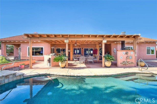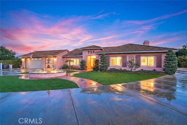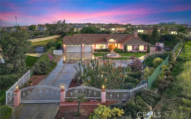 Prime location estate style home gated pride of ownership well maintained home pool rv parking above ground garden area citrus area fountain custom painted walls throughout the home sunset views lots of parking great school district close to shopping and freeways too much to list must see single level
