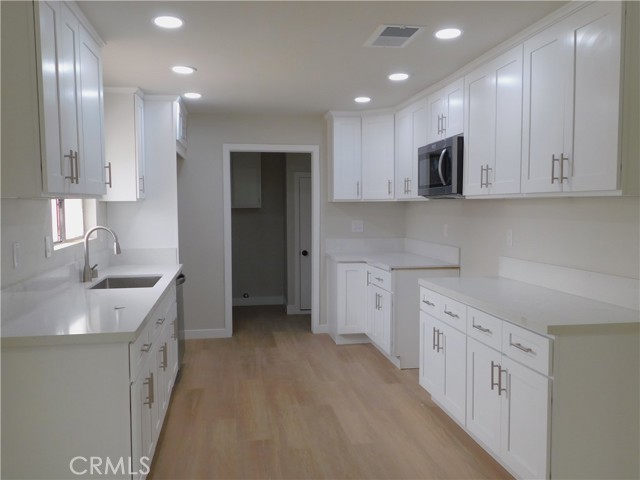 Beautifully updated home in the City of Adelanto featuring a spacious open floor plan with 3 bedrooms, 2 bathrooms, and an attached 2-car garage. This move-in ready property has been thoughtfully upgraded throughout. The kitchen showcases new cabinets, elegant quartz countertops, and brand-new appliances including stove, oven, microwave, and dishwasher, along with new laminate flooring that flows seamlessly through the home. Additional upgrades include dual-pane windows, recessed lighting, new electrical outlets, updated light fixtures, and fresh interior and exterior paint. Both bathrooms have been tastefully remodeled with new tile, modern vanities, and updated fixtures, creating a clean and contemporary feel. Perfect for a growing family or first-time buyer seeking a turnkey home. Conveniently located near schools, shopping, and major commuter routes.