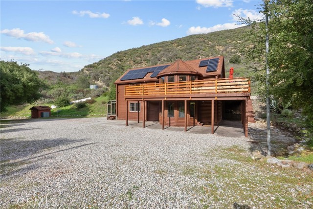 Please Read Notes regarding Road Access! Rare and extraordinary opportunity to own 4.45 acres of private sanctuary within the Angeles National Forest, perfectly positioned between Little Tujunga Canyon and Placerita/Sand Canyons. This remarkable property offers the ideal balance of serene seclusion and everyday convenience, with easy access to both the San Fernando and Santa Clarita Valleys. The over 1,900 sq. ft. residence features 3 bedrooms and is thoughtfully designed for comfort, sustainability, and self-sufficiency. A fully paid solar power system, private water well, and septic system significantly reduce utility costs while supporting a modern, eco-conscious lifestyle. The well produces 8+ gallons per minute—over 11,000 gallons per day, providing exceptional water reliability. Accessed through a private electric gate, the property unfolds beautifully. The lower portion offers a generous flat area shaded by mature oak trees—ideal for gatherings, animals, or additional outdoor enjoyment. Continue up the private drive to the main residence, or veer left to a large, flat hilltop pad showcasing sweeping mountain views and endless potential for a second home, guest residence, or custom retreat. Inside, an open-concept floor plan creates effortless flow between the kitchen, family room, and dining area, anchored by a striking natural stone fireplace. The kitchen features abundant storage, a center island with cooktop facing the living space—perfect for entertaining while staying connected to guests. Soaring ceilings in the upstairs living room and primary bedroom enhance the sense of space, complemented by a loft overlooking the kitchen below. Step outside to a fully rebuilt wrap-around deck, offering a peaceful outdoor escape with breathtaking mountain and canyon views—ideal for morning coffee, sunset dinners, or stargazing under the open sky. Additional highlights include: Refrigerator/freezer and washer/dryer included Built-in central vacuum system Recently replaced HVAC system All-electric home optimized for solar (electric water heater, dryer, and stove—no propane required) Septic system inspected and certified June 2023, including successful percolation test Starlink high-speed internet available This is a truly one-of-a-kind property offering privacy, sustainability, expansion potential, and natural beauty—rarely found so close to city conveniences. Schedule a private showing to experience this exceptional retreat firsthand.