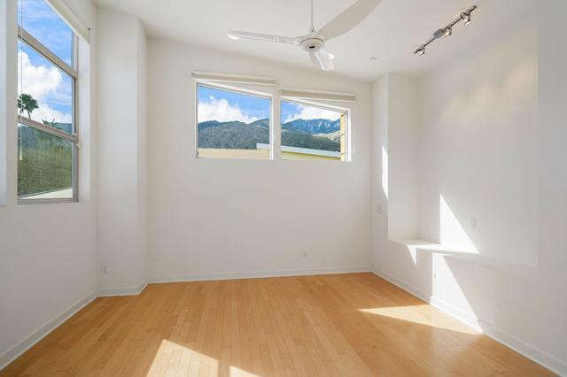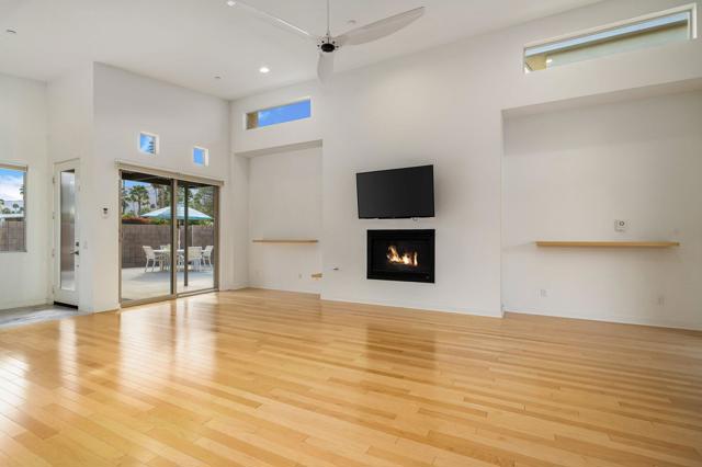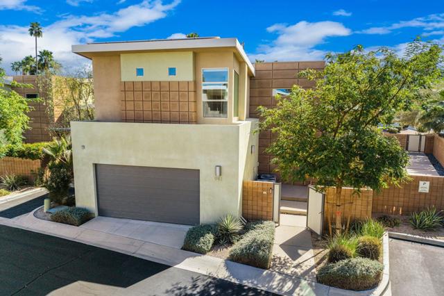 Bordering the iconic Twin Palms neighborhood in Palm Springs, this is a rare offering within the boutique Oceo community--where only nine single-family homes exist. Designed by renowned architect Jim Cioffi, AIA, this home sits on an expansive lot that stretches from Oceo Circle South to Twin Palms Drive--an uncommon footprint that creates exceptional space and separation between neighbors. The primary views overlook the established, single-story homes of Twin Palms, enhancing both privacy and architectural charm.A marble and French limestone entry sets a sophisticated tone, opening to a dramatic great room defined by soaring ceilings, clerestory windows, warm wood floors, and expansive sliding glass doors. The seamless indoor-outdoor flow is quintessential Palm Springs--anchored by a south-facing, professionally restored saltwater pool and spa that enjoy sun all day long. Panoramic San Jacinto Mountain views frame the backdrop, while a generous wraparound patio invites effortless outdoor entertaining.The main-level primary suite is a private retreat with direct pool access and stunning mountain views. Its marble-clad bath features a sunken soaking tub, oversized walk-in shower with dual shower heads, dual vanities, custom cabinetry, and a spacious walk-in closet. Also on the main level: a dedicated dining area with wet bar, a sleek modern kitchen equipped with BOSCH built-in microwave and oven, BOSCH lighted vent hood, five-burner gas cooktop, oversized KitchenAid refrigerator, pantry, powder room, and a separate laundry room with sink. A gas fireplace with logs adds warmth and ambiance to the living space.Upstairs, two junior ensuite bedrooms offer high ceilings, private baths, and expansive views. One suite features a sitting area, large walk-in closet, and access to a south-facing sun deck showcasing sweeping 180-degree vistas of Twin Palms' celebrated mid-century architecture and surrounding mountains.Built in 2015 and lovingly maintained by its original owner--never rented--this home blends modern efficiency with timeless design. Features include owned solar, dual-zoned Carrier HVAC, a Bradford White 75-gallon water heater, Hague Watermax filtration system, custom Hunter Douglas blinds, authentic Big Ass Fans throughout, wood flooring, and an attached two-car garage. Approximately $20,000 in thoughtful upgrades further elevate the home's comfort and style. Low HOA's of $312/mo.