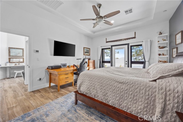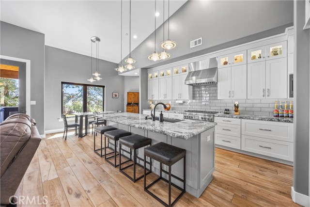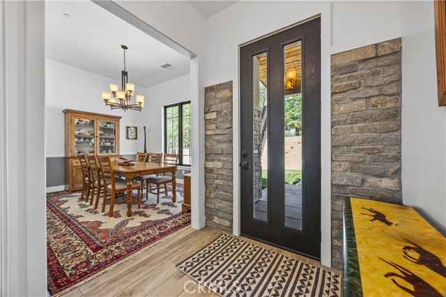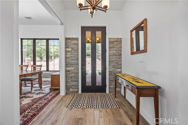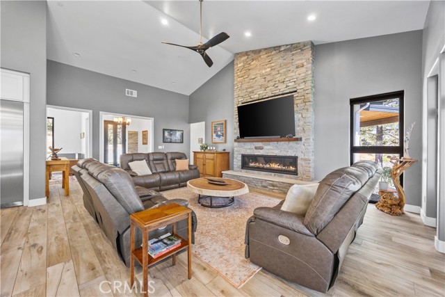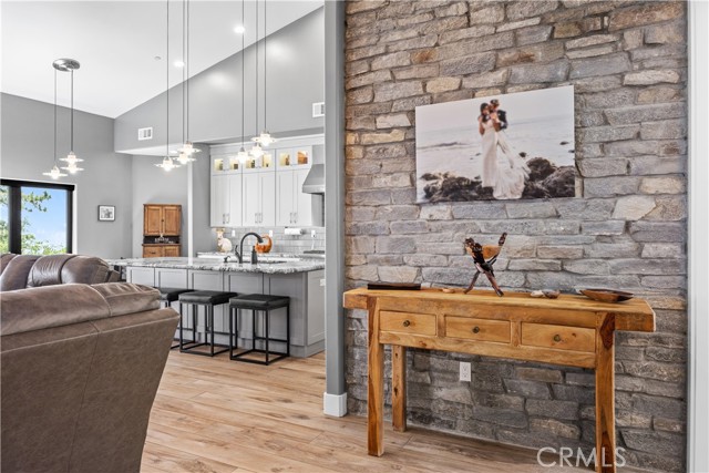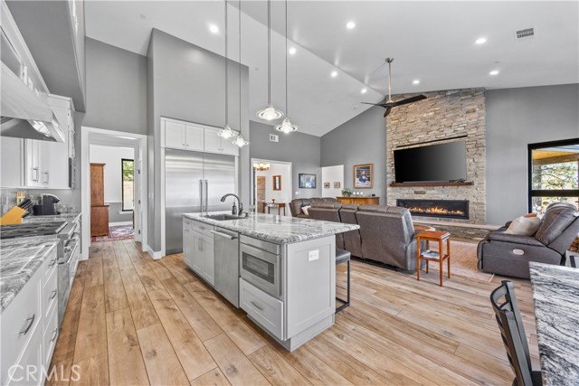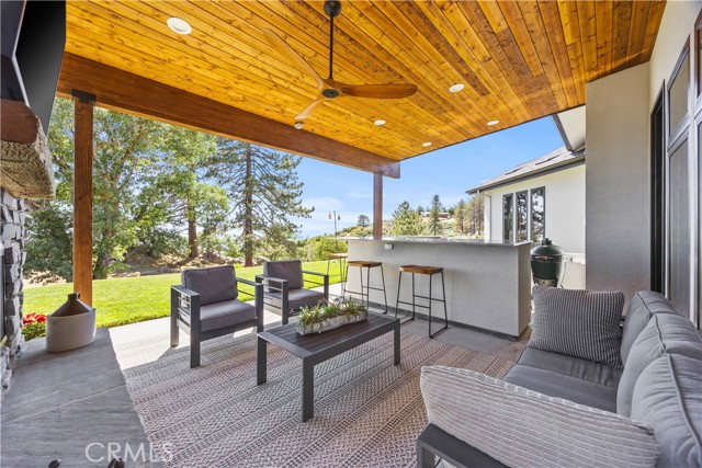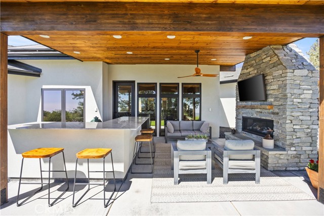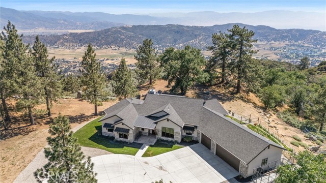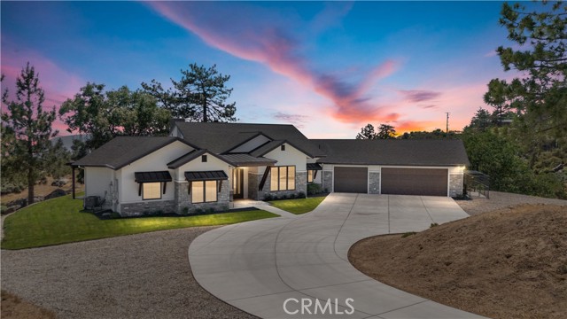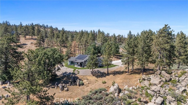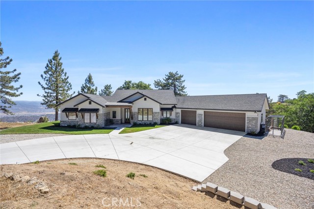 Constructed in 2022, this unique custom-built single-story home features heated hydronic tile floors throughout, antique hand-hewn oak ceiling beams in the den, 2 EV charging outlets, two Tesla batteries with 21 solar panels providing virtually no electric bill each month and eliminating the inconvenience of power outages, fiber internet, exquisite interior and exterior stonework and a chef’s kitchen with built-in Thermador appliances. The property provides stunning views across the valley from The Grapevine in the southwest to the windmills in the southeast. Sunsets are breathtaking above the mountains in the distance. Step through the ten-foot-tall front door into the wide-open floor plan, enhanced by a 13-foot-high vaulted ceiling and large Anderson window views of the mountains and valleys below. The living area is highlighted by a modern linear stone fireplace situated beneath an 85-inch television. The adjacent chef’s kitchen offers ample area for family cooking and socializing. The kitchen is equipped with a top-of-the-line large Thermador built-in refrigerator and matching freezer, a 6-burner range, and 2 microwaves. Adjacent to the kitchen and walk-in pantry is a spacious formal dining room. The primary bedroom boasts an ensuite bath, extra-large shower, walk-in closet, and private terrace where one can snuggle up with a good book and a cup of coffee or watch the endless activity of nature’s creations. On the same wing of the house is a guest bedroom and full bath. An opposite wing offers an additional bedroom with ensuite bath and adjacent den. The private rustic den has its own stone fireplace and television. The laundry room is equipped with a washer and dryer, wall and base cabinets and granite counter with room to hang clothes above a utility sink. Other interior features include wide interior doorways, an expansive 3-car garage with tankless water heater, whole-house water filtration and softener system, generator transfer switch, garage refrigerator, and workbench. There is even a dog-collar-activated door leading to an attractive outside dog pen. Outside provides acute attention to landscaping, a fenced and terraced garden area, LeafFilter gutters, and 3 patios: one with stone fireplace, tv and bar. Two adjacent lots are also available, both with picturesque rock outcroppings and level building sites.