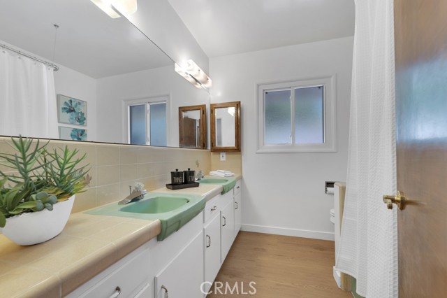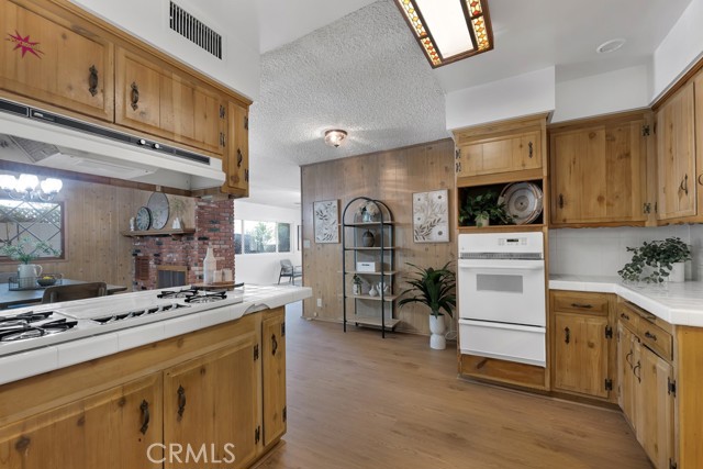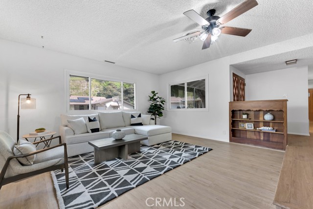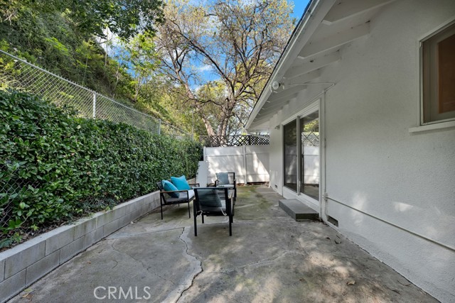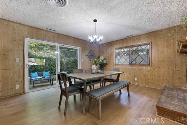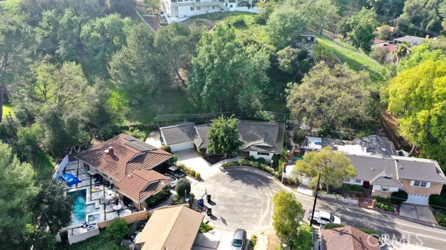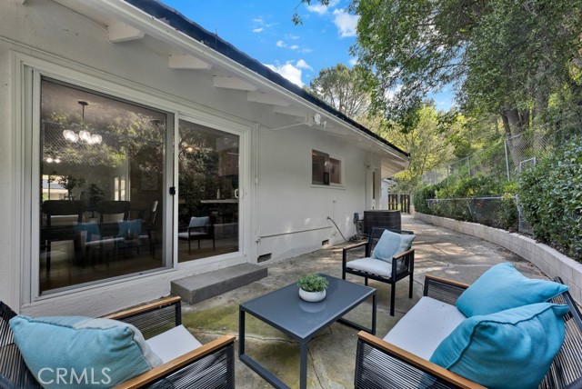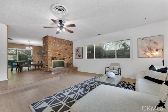 Located south of the Boulevard at the end of a quiet cul-de-sac in desirable Woodland Hills and within the boundaries of highly-rated and award-winning schools including Calabash Charter Academy, Hale Charter Academy, and El Camino Real Charter High School, this single-story California ranch home offers 3 bedrooms, 2 bathrooms, and 1,678 square feet of living space on an expansive nearly 17,500 sq ft lot. A charming double-door entry introduces a thoughtfully designed floorplan filled with mid-century character, luxury vinyl flooring throughout, abundant natural light, and delightful built-ins that enhance both charm and functionality. The step-down living room showcases a dramatic floor-to-ceiling two-way brick fireplace with raised hearths on both sides, creating a striking focal point shared with the adjoining dining room. The dining area opens to the backyard patio through a sliding glass door and flows seamlessly to the kitchen, complete with a breakfast bar, built-in gas range, and wall oven. Just off the kitchen, a dedicated laundry room provides additional storage, direct exterior access with a doggie door, and a ¾ bath with convenient secondary access from the front hallway. All three bedrooms are generously sized and feature walk-in closets, while the full hall bathroom offers a dual-sink vanity. A 2-car garage adds ample parking and storage. The sizable lot extends up a hillside, presenting an exciting opportunity to design a terraced garden retreat with potential view decks and layered outdoor living spaces, while the existing flat, usable yard is finished in expansive concrete patio—ideal for entertaining, relaxing, or future customization. Enjoy close proximity to shopping and dining at Westfield Topanga and The Village at Westfield Topanga, the vibrant restaurants and boutiques along Ventura Boulevard, nearby parks and hiking trails, convenient access to the 101 freeway, and easy drives to Malibu via scenic Topanga Canyon Boulevard.