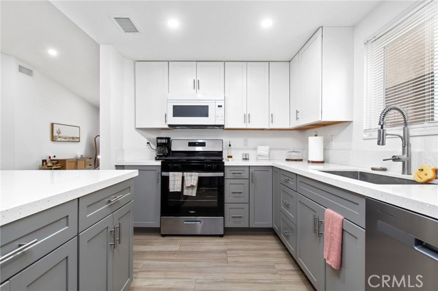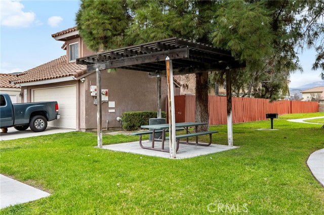 Welcome to 131 Mahogany St! This beautiful home offers 3 bedrooms, 2 bathrooms, and interior updates designed for low-maintenance living. Wood-look tile flooring runs throughout the main living areas for durability and visual continuity. The remodeled kitchen features shaker cabinets, quartz countertops, and updated finishes that provide clean lines and functional workspace. Both the primary and guest bathrooms have been fully renovated with shaker cabinetry, quartz counters, and newly tiled showers. The floorplan provides defined living and dining areas with direct access to the backyard. This home also features LED recessed lighting and newer windows. Located within a gated community, residents have access to a community park area that includes BBQ stations, covered picnic tables, playground, and basketball court. Convenient access to local shopping, dining, and daily services throughout San Jacinto. Includes 3D virtual tour for remote viewing.