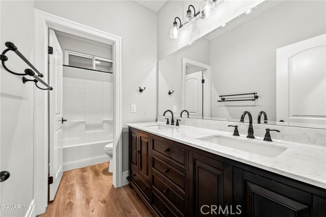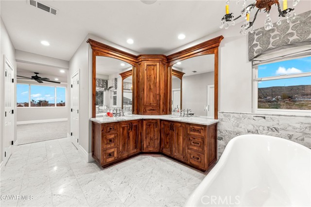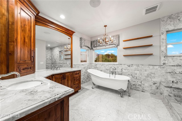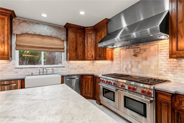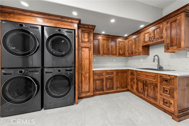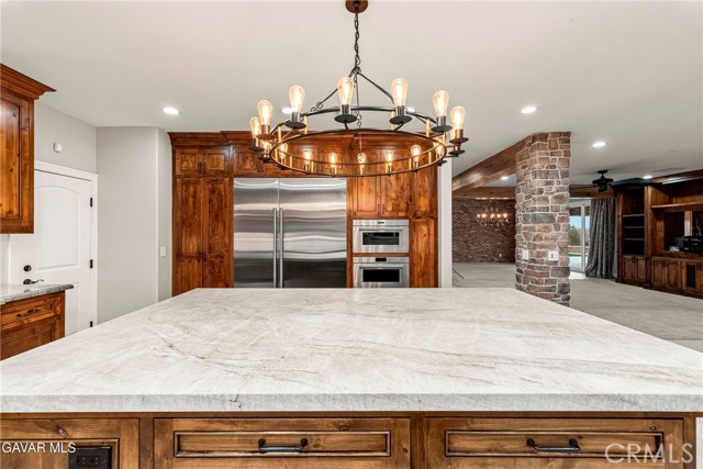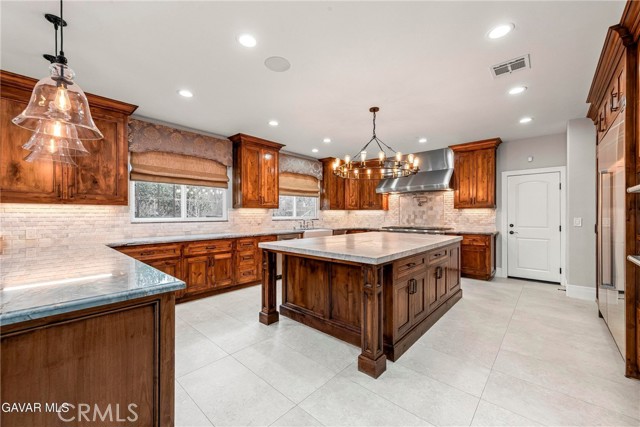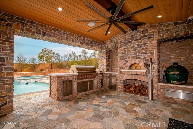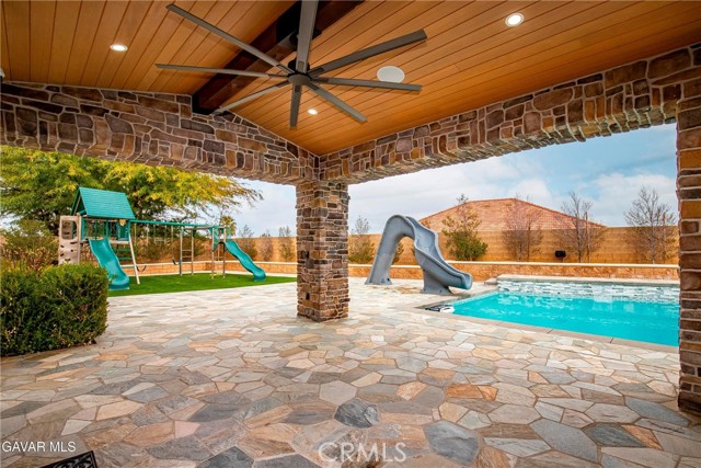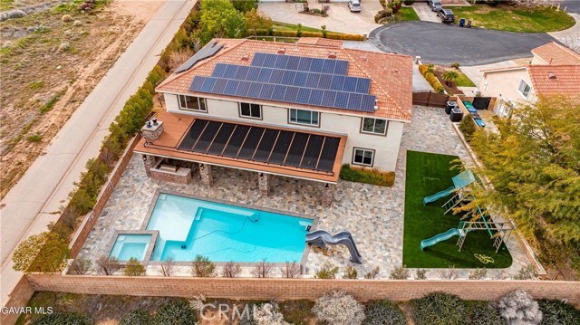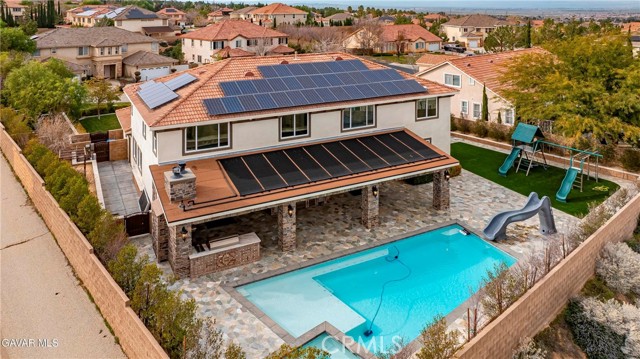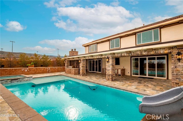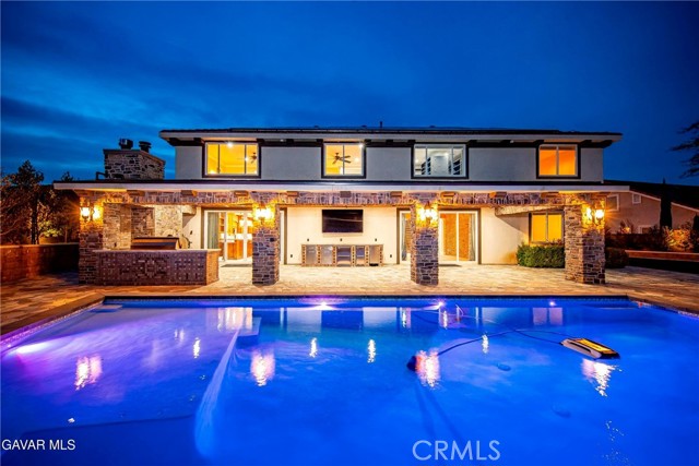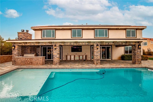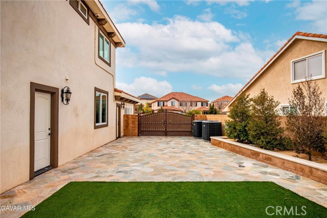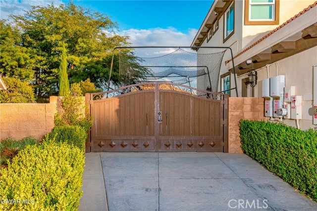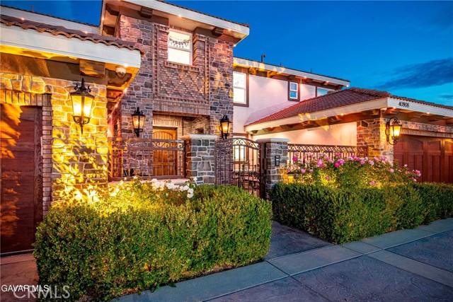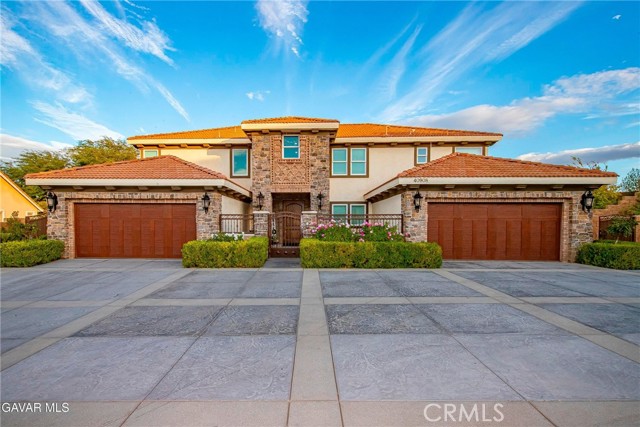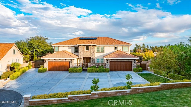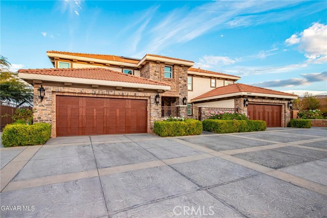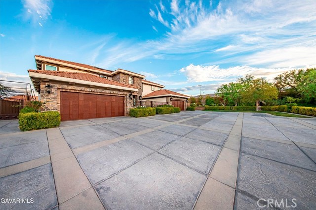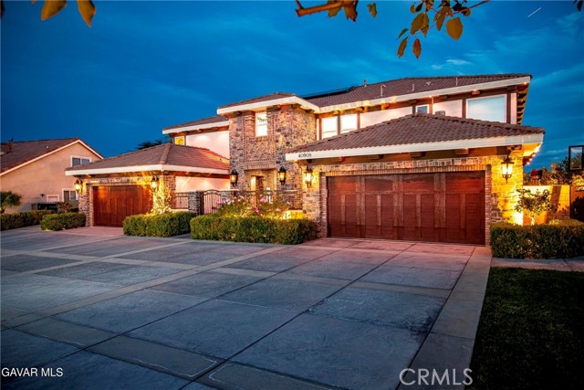 SPECTACULAR HIGHLY CUSTOMIZED HOME IN WEST PALMDALE GATED COMMUNITY Ready For Your Family! You'll love the Attention to Detail. An Expansive Parking area, Concrete with Decorative Banding accented with Rock Accents and Attractive Landscaping on 3 Sides. You enter the Home through the Gated Courtyard Entry. From the Oversized Solid Wood Door through to the back yard Outdoor Kitchen you will see that no money was spared. The Open Floorplan Concept which includes Large Living and Dining Rooms plus a Huge Entertainment and Bar Area are great all Impressive. And the Kitchen! Wow. It will knock your socks off. Rich Knotty Alder Cabinets with Thick Stone Countertops. Wolf Appliances include 60 Inch Range with Double Ovens and Griddle. There are 2 Dishwashers, a Microwave plus separate Convection Oven. The cook in the house will be amazed at the Huge Butler's Pantry with Lots of Work Area, a Utility Sink, Room for a second Refrigerator and Freezer and lots of Pantry Shelving. And the Doors are built to Integrate with the Kitchen Cabinets. Downstairs there are 2 Bedrooms and a Bathroom with access to outside (Pool Bath). Upstairs is a Loft TV/Game Room great for family gatherings. You will love this Huge Master Bedroom, the 3 Walkin Closets are finished with Custom Builtins. All Bathrooms have been Upgraded. Did I mention the Laundry Room. It is already set up with 2 Washing Machines and 2 Dryers neatly stacked in the Builtin Cabinets. There is a Utility Sink and Lots of Work Space and of course, all Cabinets are Knotty Alder. Outside if made for entertaining: Huge Covered Patio with Recessed Lighting, Ceiling Fans, Large Gas BBQ plus Green Egg BBQ, Pizza Oven, Refrigerator, Chilling Drawers and Ice Maker. The Inground Pool with Raised Spa is the focal point of this Lovely Yard. All Flatwork under the Patio, around the Pool and more is Rich Natural Flagstone. This outdoor space perfectly compliments the gorgeous interior for GREAT INDOOR/OUTDOOR LIVING! Don't miss it!
