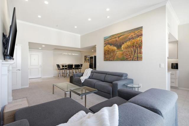 Step into one of Park Townsend's most exceptional penthouses. An extraordinary turnkey retreat in the heart of Downtown San Jose. This top-floor penthouse offers remarkable privacy, soaring ceilings, & an abundance of natural light. Extensively remodeled w/ high-end designer finishes! The dream kitchen features custom all-wood StarMark cabinetry w/ soft-close functionality, a premium Bosch appliance suite, Franke sink & faucet, and stunning quartz countertops & backsplash. Two spacious bedrooms each w/ oversized walk-in closets. The primary bedroom has a luxurious en-suite bathroom w/ a large soaking tub and dual sinks. Both bathrooms feature showers w/ floor to ceiling porcelain tiles, quartz countertops, & custom StarMark cabinetry. Recessed LED lighting w/ Lutron dimmers, a custom dining chandelier, motorized Hunter Douglas blinds, & in-home laundry. There is bonus space that could be used as an eating area, office, etc. Private balcony overlooking the resort-style pool. Heated pool & spa, fitness center with saunas, conference/social room, & vibrant social spaces. Just moments to San Pedro Square, SAP Center, dining, coffee, shopping, transit, & major highways. 2 assigned parking spots in the secured garage and 2 massive storage units! Don't miss this luxurious penthouse!