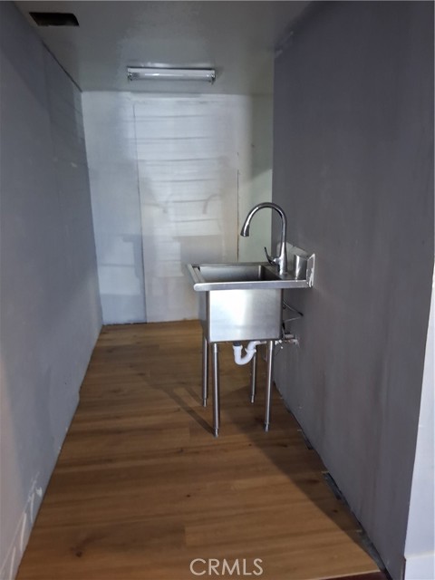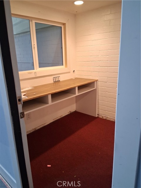 This property features a small entry way, two offices, a bigger meeting area, a half bath, a larger warehouse space towards the back as well as an additional sink and a separate shower.