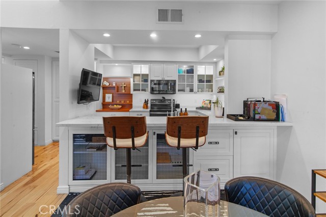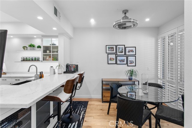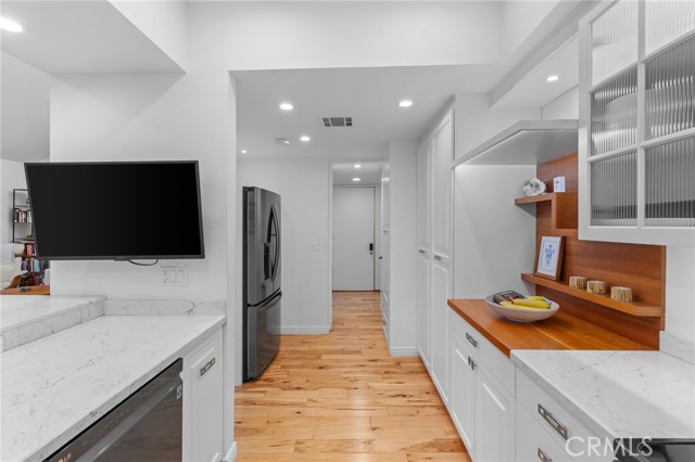 Located in the Heart of Encino, this Stunning Top-Floor Penthouse offers a Rare Combination of Chic Style & Convenience. This Unit is a Model-Perfect Residence that has been Extensively Upgraded to provide a Sophisticated, Turnkey Living Experience. The Home offers Soaring Cathedral Ceilings with an abundance of Natural Light Streaming through the Gallery-Style Dual Paned Windows. The Designer Kitchen is a Custom-Built Culinary Masterpiece featuring an Artisan-Designed Layout with Stone Countertops, Premium Stainless Steel Appliances, a Farmhouse Sink, Wine Refrigerator and Elegant Glass Cabinetry. The Unit has Gorgeous Wide-Plank Hardwood Floors that Flow throughout the unit. The Living Room includes a Wet Bar with a Wine Refrigerator, perfect for Entertaining, along with a Sliding Glass Door that opens to the Spacious Tiled Balcony making it an ideal spot for an Urban Garden or Sunset Dining. The Primary Suite offers a Serene Retreat with Vaulted Ceilings, Dual Sinks, Multi-Mirrored Closets and a Lavish Primary Bathroom with a Dedicated Dressing Area. The Unit also includes Central Heating/AC, Recessed Lighting, Plantation Shutters and tons of Natural Light. It also inlcudes 2 side-by-side Subterranean Parking Spaces with Additional Parking. Situated in the well-maintained "White Oak Encino" Complex, Residents enjoy a Resort-like Atmosphere with Lush Landscaping and Mature Trees. Amenities include a Sparkling Pool, Indoor Spa, Sauna & Recreation Room. HOA Perks: Dues cover Earthquake Insurance, Water, Trash and Common Areas Maintenance. The Complex is walkable to Ventura Blvd., Premier Shopping, Trader Joe's, World-Class Dining and Close to Freeway Access.
