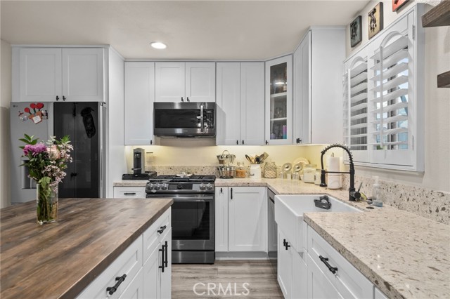 Welcome to this beautifully maintained 3-bedroom, 2.5-bath condo nestled in the highly desirable city of Placentia. With charming curb appeal, a cute front porch, and manicured landscaping maintained by the HOA, this home offers easy living in a picturesque community. Step inside to find plantation shutters and an inviting open layout featuring a spacious family room and dining area complete with a cozy fireplace. Sliding glass doors provide natural light and lead out to the private backyard, creating a seamless indoor-outdoor flow perfect for everyday living and entertaining. The recently remodeled kitchen is a standout, showcasing quartz countertops, white shaker cabinetry, and a generous kitchen island. Open to the breakfast nook/dining area, this space offers both style and functionality, ideal for gatherings or casual meals. A convenient powder bathroom is located on the main floor. Upstairs, the primary suite provides a comfortable retreat with its own private bathroom. Two additional bedrooms and a full bathroom complete the upper level, offering flexibility for family, guests, or a home office. The backyard features a covered patio, artificial turf, and a paved cement area—designed for low-maintenance enjoyment year-round. A two-car garage with alley access adds convenience and privacy. Residents enjoy a beautifully maintained HOA community with access to a sparkling pool, relaxing spa, and barbecue area—perfect for enjoying Southern California living at its finest. The roof was replaced in 2020, and the exterior was freshly painted last year, offering added peace of mind and pride of ownership.