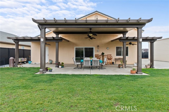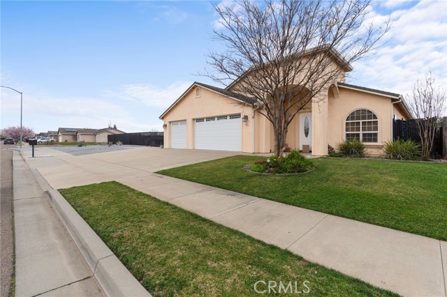 This fantastic property is cited within an enclave of nice homes built in 2012 near this Historic Old Town. Victorian architecture & well-preserved civic buildings adorn the center of the city. Red Bluff is named for the red-colored banks of the Sacramento River and home to the annual Red Bluff Round Up. This rodeo is well attended by World Class Contestants. Step inside this sprawling single story house & instantly feel at home. 13 foot high ceilings & open concept living spaces allow for gathering of friends and family. A lovely private primary suite with a recently remodeled luxurious walk-in shower with bench & bidet commode in water closet, double sinks & walk-in closet. Tall interior doors. Living room focal point is a 12 foot projector & TV screen system for watching your favorite sporting events and movies. Remote control blinds in the living room. Large pantry in the kitchen with ample storage. Family room currently set up as entertaining & dining area. Convenient laundry is adjacent to the guest bedrooms. Enjoy the OWNED SOLAR system producing 10 kw for those hot summer days. Insulated patio cover with lights and fans for those hot summer nights. Fully fenced yard with meticulously maintained grass, mature shrubs, sprinkler & dripper timers. 3-car garage with accessible attic storage and doggy doors into the yard and house. Lot next door currently used as additional yard space and is available for separate purchase MLS #SR26036420. Discover the history of this sweet neighborhood with views of majestic Mount Shasta & Mount Lassen National Parks. This home is a gateway to incredible recreation and water sports at Lake Shasta and along the Sacramento River. This is a GREAT HUB FOR ADVENTURE.