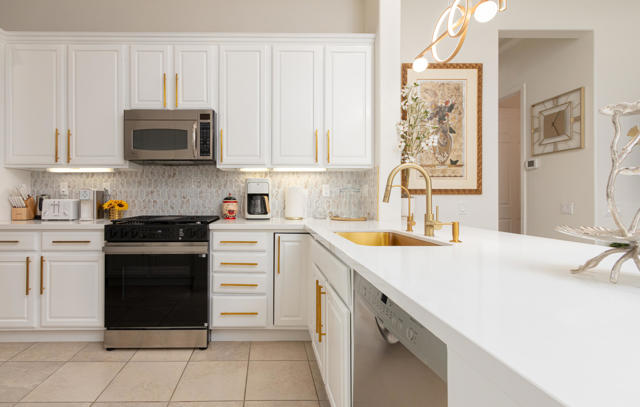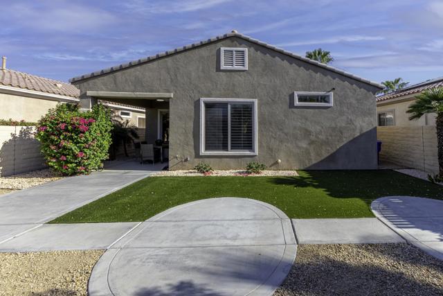 This beautifully remodeled home is move-in ready and packed with modern upgrades throughout. Featuring 2 bedrooms, 2 bathrooms, and a versatile den; complete with a custom tall barn door, and wardrobe for which the den can be used as a 3rd bedroom. This home offers both comfort and style. Enjoy brand new luxury vinyl wood flooring that complements the existing natural tile, creating a cohesive look. The entire home has been thoughtfully updated with recessed can lighting, four new ceiling fans, and new electrical outlets for added convenience. The spacious kitchen showcases stunning new quartz countertops, abundant cabinet space, and updated fixtures. In the living room, a sleek floating fireplace adds a contemporary touch of ambiance to the home. Additional upgrades include new faucets in both bathrooms and the kitchen, elegant window shutters, and energy efficient double pane windows. You can step outside to a low-maintenance backyard with artificial grass and a new sprinkler timer, perfect for easy outdoor enjoyment. The yard has been also beautifully manicured with rock and lush green trees reflecting our natural desert environment. Sun City Shadow Hills is an active lifestyle 55+ golf community that is surrounded by stunning mountain views. While exploring the ground, you'll notice the meticulously kept Schmidt-Curley, Inc. design 18 hole golf course. Included in the breathtaking gold landscape are the beautiful ponds, which add nothing but tranquility to your day. Unwind in the clubhouse, a hub of weekly fun activities and connection, or visit the library to nurture your mind. Maintain mind and body health by using the fitness center or many other amenities which include: tennis, pickle ball, bocce and so much more. Call for more information.