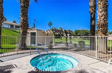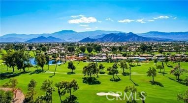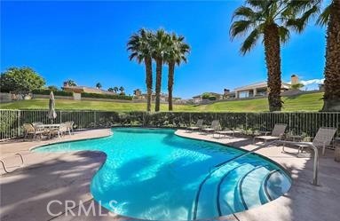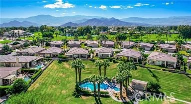 Welcome to Bellissimo, a quiet, gated community of 52 homes within guard gated Bermuda Dunes Country Club. This 3 bedroom, 3 bath home overlooks the common area, heated pool and spa and adjacent outdoor shower. Open concept living area with sliders opening to a relaxing patio with mountain views. Living area with fireplace, kitchen with granite countertops, many cabinets, high-rise kitchen island also with granite countertop with barstool chairs, gas cooktop and separate dining area. Primary bedroom (w/ensuite) with sliders opening to gorgeous mountains views. Separate laundry closet with washer/dryer. Two car garage with adjacent golf cart garage. HOAs include security, cable TV, internet, landscape maintenance of both front and rear of the home and the open area and pool/spa. This lovely home is steps away from Bermuda Dunes Country Club (memberships available). Bermuda Dunes Country Club's considered one of the most distinguished & prestigious golf clubs in Coachella Valley. Fabulous restaurants/shopping nearby. A MUST SEE!