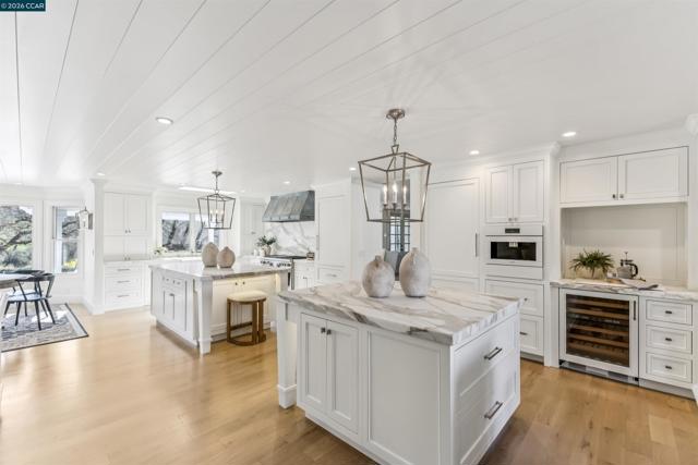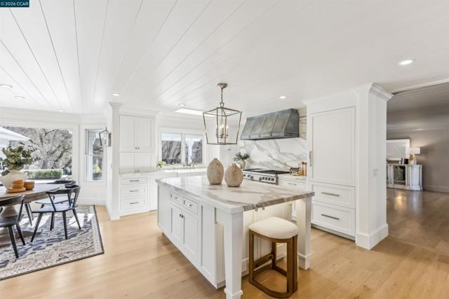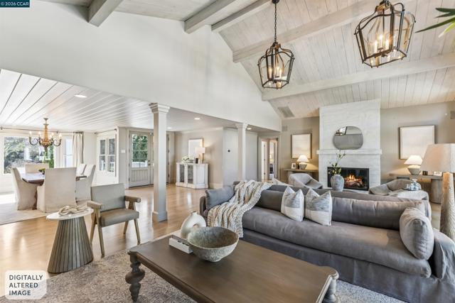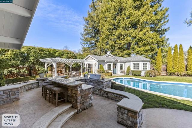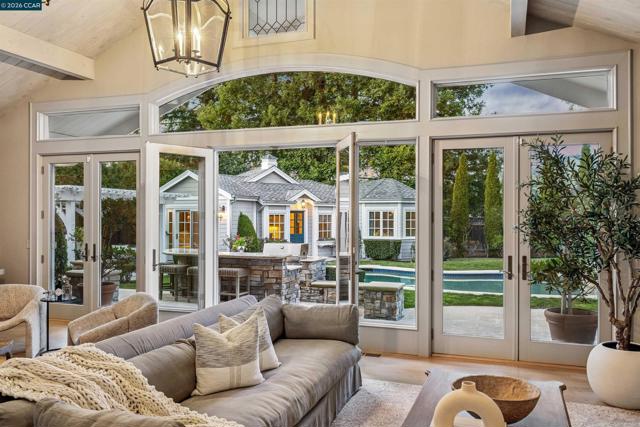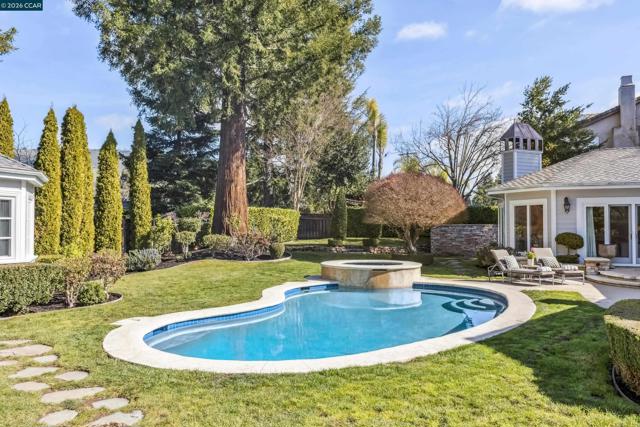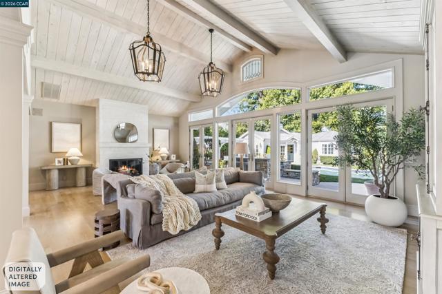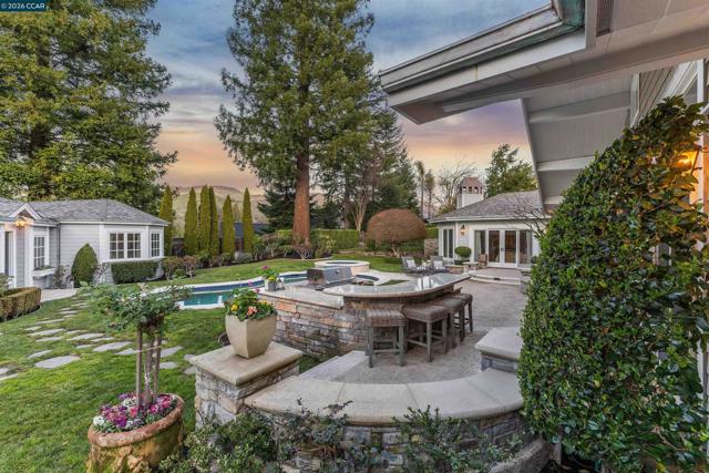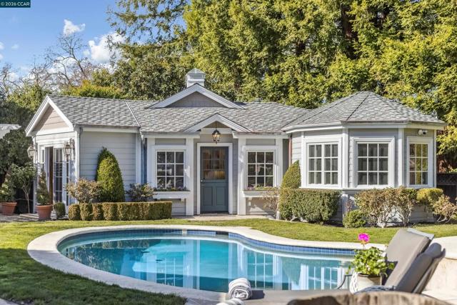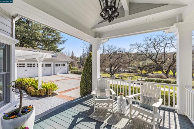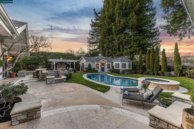 Nestled within the prestigious Diablo CC neighborhood, this custom East Coast-inspired estate offers a rare blend of timeless design and storybook charm. Set on a remarkable lot with front views of the 17th fairway and stunning rear vistas of majestic Mt. Diablo. The fully updated home offers 4 bedrooms/2 full baths/2 half bath plus an office all on the main level. Upstairs, a versatile loft is complemented by both a full and half bath. The chef's kitchen features dual marble islands, Sub-Zero refrigerators, Wolf range a breakfast nook and custom cabinetry. The kitchen opens to a warm and inviting family room with access to the backyard. The expansive living room impresses with soaring wood beam ceilings, pretty hardwood flooring and French doors leading to the outdoor entertaining areas. Enjoy the sparkling pool/spa, built-in BBQ w/bar seating or unwind beneath the pergola next to the stone fireplace. A charming guest cottage adds unique character with its high ceiling and Dutch door--perfect for guests, extended family, or a private retreat. Additional highlights include statement light fixtures, decorative millwork, extensive built-in cabinetry, and a detached 3-car garage. This rare offering delivers luxurious comfort in one of Diablo's most coveted locations.