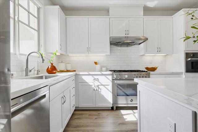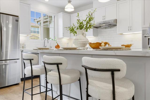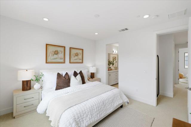 Discover your exquisite Silicon Valley oasis! This home offers a premier unit within a small community, ensuring an unparalleled location, privacy, abundant natural light, and scenic views. It features 4 bedrooms, 3.5 bathrooms, and 1,734 square feet of thoughtfully designed living space. The main floor boasts an open-concept design, a formal dining area, and a kitchen and living room bathed in sunlight. The gourmet kitchen showcases a large island, stainless steel appliances, a gas cooktop, and beautifully designed cabinetry. Upstairs, the luxurious primary suite features an en-suite bath with a dual-sink vanity, a walk-in shower, and a walk-in closet. Two additional bedrooms offer flexibility for children, guests, or office. On the 1st floor, a private bedroom with a full bath is perfect for visitors or potential rental income. Additional features include a two-car garage, luxury vinyl flooring, dual-zone A/C, and an EV charger. Enjoy easy access to major tech companies like Google, Meta, and LinkedIn, as well as vibrant downtown Mountain View. The community offers green spaces, with quick access to parks including Magical Bridge Playground, shopping such as Safeway and Costco, and major highways 101 and 85. Don't miss the chance to call this incredible home yours!