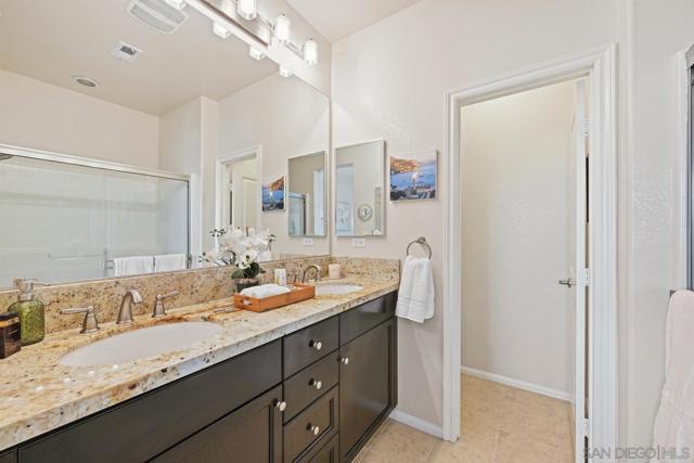 Set against a backdrop of serene views and enhanced privacy, this light-filled home delivers an inviting, contemporary feel throughout. The thoughtfully designed kitchen anchors the open living space, featuring custom granite countertops, new stainless steel appliances, and a convenient powder room—ideal for both everyday living and hosting guests. Recent updates include a freshly painted interior, brand new carpeting on the stairs, and newly refreshed kitchen cabinetry, adding a crisp, move-in-ready appeal. Upstairs, two generously sized primary suites each offer their own private en-suite bath, creating flexible living options for guests, roommates, or a home office setup. Comfort and efficiency are elevated with upgraded, extra-thick dual-pane windows, while a full-size stacked Whirlpool washer and dryer add everyday convenience. The tandem two-car garage provides ample room for parking plus extensive shelving for organized storage. Living at Magnolia at Old Creek Ranch means embracing an active, resort-inspired lifestyle. Residents enjoy access to a heated swimming pool, relaxing spa, and barbecue area—perfect for soaking up San Diego’s sunshine. Ideally located in North County, the community offers quick access to scenic hiking and biking trails, with the beaches of Carlsbad and Encinitas just minutes away. Shopping, dining, and entertainment abound nearby at Bressi Ranch, La Costa Town Center, Carlsbad Village, and Encinitas, all complemented by close proximity to top-rated schools and neighborhood parks.