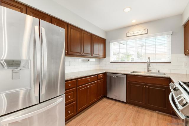 Welcome home to this gorgeous single-level ranch in desirable North Oceanside! Situated on a spacious 6,000 sq ft lot, this light and bright beauty offers the perfect blend of comfort and style. Walk through the front door and you’re welcomed by a home with a brand new roof as of 2023, stylish vinyl flooring and an open-concept layout that seamlessly connects the living room, dining area, and kitchen—ideal for everyday living and entertaining. The kitchen features granite countertops, ample cabinetry, and plenty of prep space. Bedrooms are cozy with plush carpet, and both bathrooms showcase stunning floor-to-ceiling tiled showers for a sleek, modern touch. The primary suite opens through elegant French doors to your own private backyard retreat. Enjoy lush landscaping, vibrant plants, and plush grass with plenty of space to host gatherings, relax, or create your dream outdoor oasis. Additional highlights include dual-pane windows, a financed solar system, a 2-car attached garage, and generous driveway parking. No HOA and no Mello-Roos! Conveniently located just 20 minutes from the beach, near Camp Pendleton, down the street from Mance Buchanon Park, and less than a mile to major shopping centers—this move-in ready home offers comfort, convenience, and an incredible opportunity in a prime location. Don’t miss your chance to make it yours!