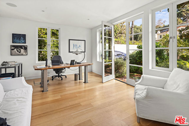 Available June through September: Whether it's spending a few months as a visitor in Santa Monica, adjacent to State Beach, enjoying an adventure while remodeling one's own house or simply experiencing a memorable chapter. Here is your chance to do so. Some houses attract cultural figures who influence contemporaries and future generations. 165 Mabery Road is one of them. Currently owned by a Canadian family who are self-proclaimed modernists, they nevertheless couldn't resist the magnetism of this half-timbered English-style structure when they first saw it. In a testament to their scope, they hired architect Michael Kovac to assist. With Michael's help, and their own exquisite taste, they transformed the interior into a modern sanctuary. The dialogue between the two styles is seamless and memorable. In practical terms the house offers two comfortable main bedroom suites, two home offices, two family rooms, a media room, a gym, and a guest house. The views of the Pacific Ocean and the Canyon are intoxicating. The indoor/outdoor flow from the kitchen to the gardens, the California pool, the outdoor dining, kitchen, and the guest house all embrace the quintessential California lifestyle. Some of the owners and residents included Salka & Berthold Viertel, Daniel Mann, and Gordon Davidson. Through decades, the house hosted many memorable salons and get-togethers. The garage is used as storage and is not included in the lease.
