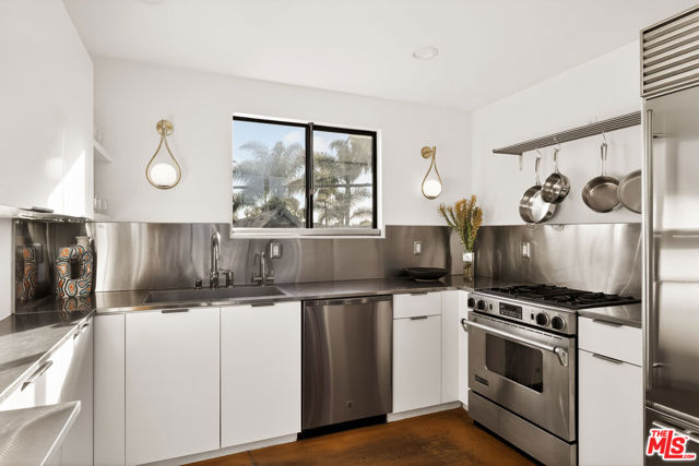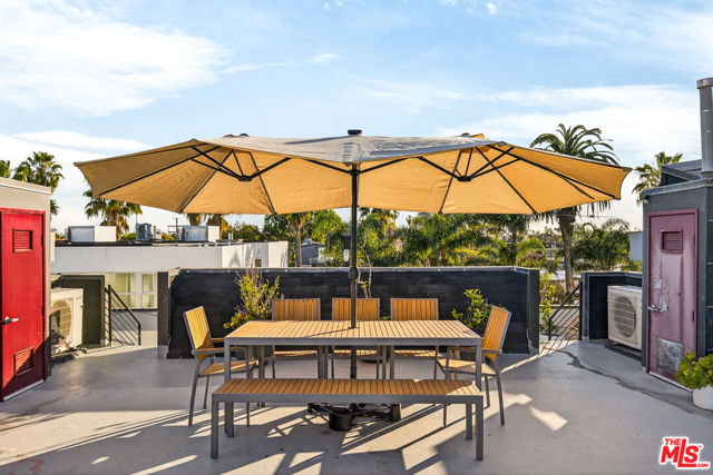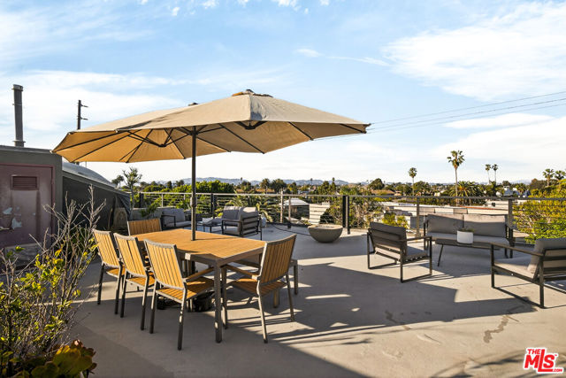 This is more than a loft - it's a private architectural sanctuary in the heart of Venice. Soaring ceilings, gallery-scale walls, and expansive glass flood the space with natural light, creating a residence that feels like a boutique hotel infused with contemporary art sensibility. Designed for those who live boldly and entertain beautifully, this one-bedroom plus den home offers volume, versatility, and architectural presence rarely found on the Westside. The open-concept living area is anchored by polished concrete floors, exposed steel beams, and sculptural wood elements, creating a refined, zen-inspired aesthetic. Sunlight pours through oversized windows, framing palm trees and painted sunsets while illuminating every curated detail. The flexible floor plan includes a generous primary retreat and a separate den with its own en suite bath that easily functions as a second bedroom or media lounge, while a distinct built-in office provides a dedicated workspace. Custom millwork, warm wood cabinetry, and clean architectural lines elevate the interiors to a level that feels both serene and sophisticated. The kitchen and entertaining areas are designed for serious culinary ambition. In addition to the main kitchen, the garage features double commercial refrigerators, a commercial freezer, and a secondary kitchen setup - ideal for a chef, private tastings, or seamless hosting on a larger scale. The garage itself offers exceptional flexibility ideal as a private screening room, recording or podcast space, art studio, fitness studio, or creative workspace. The possibilities are expansive. Crowning the residence is a private rooftop deck with panoramic mountain and city views that glow at sunset. Multiple lounge areas, dining space, and room to host under the stars create the ultimate indoor-outdoor lifestyle experience. Just moments from Abbot Kinney, the beach, and the best of the Westside, this loft is not simply a home - it's a statement. A creative compound. A place to live, work, entertain, and inspire.