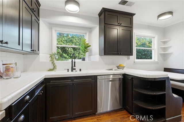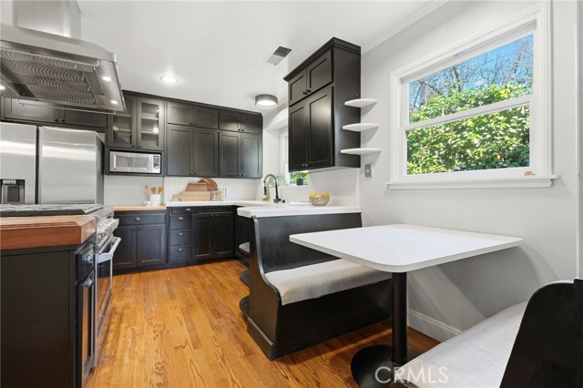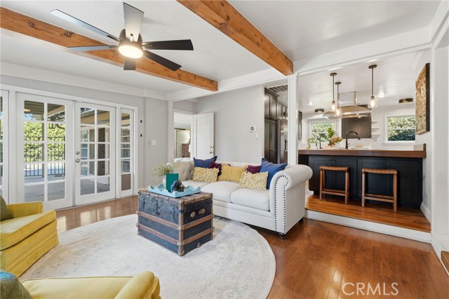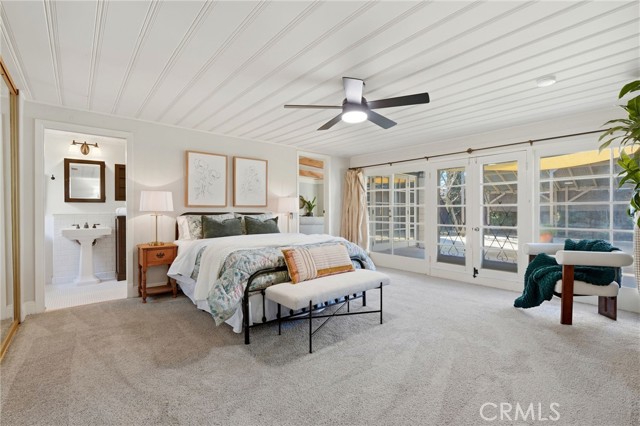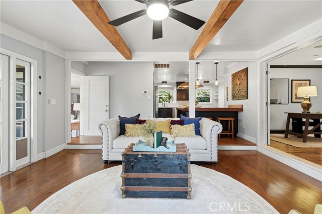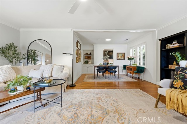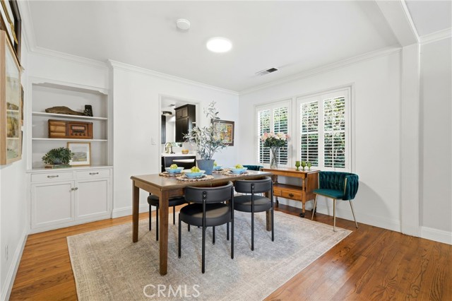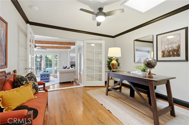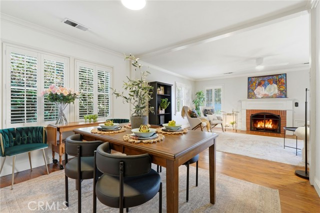 Timeless 1940s charm meets modern comfort at this beautiful home nestled in the heart of Visalia’s beloved Beverly Glen neighborhood. Every space in this home reflects the craftsmanship and character that makes homes in this neighborhood so special - thoughtfully maintained while offering the functionality! Step inside to find rich wood floors, plantation shutters, detailed molding, and abundant natural light throughout. The formal living room with a cozy fireplace and wood hearth flows into a charming dining room with built-in bookcase, while the kitchen features a professional 6-burner gas range, stainless steel appliances, wood bar and countertops, and a built-in dining booth, all opening to a spacious family room with French doors leading outside.The primary suite offers a peaceful retreat with its own brick fireplace, French doors to the backyard, and an updated en suite bath complete with dual pedestal sinks and a custom tile shower. Two additional bedrooms, a dedicated office space, and generous storage provide flexibility for everyday living. Step outside to your own private oasis featuring a built-in pool, covered patio, and mature surroundings ideal for entertaining or unwinding. The detached guest house includes a bedroom area, bathroom, kitchenette, private covered patio, and laundry room, perfect for extended family, visitors, or flexible living arrangements. This is a rare opportunity to own a piece of Visalia charm in one of its most quaint and cherished neighborhoods.