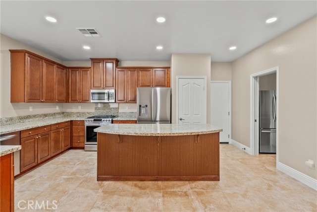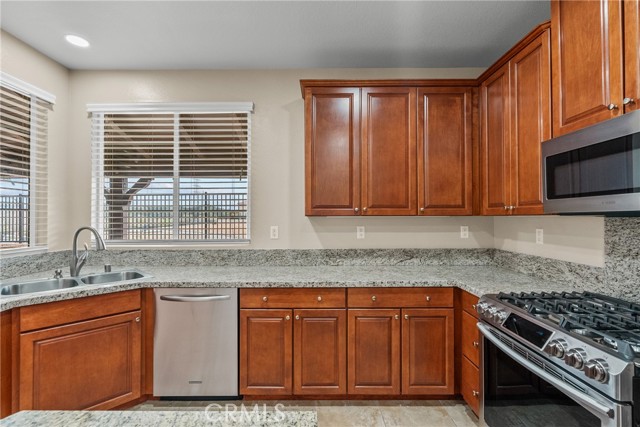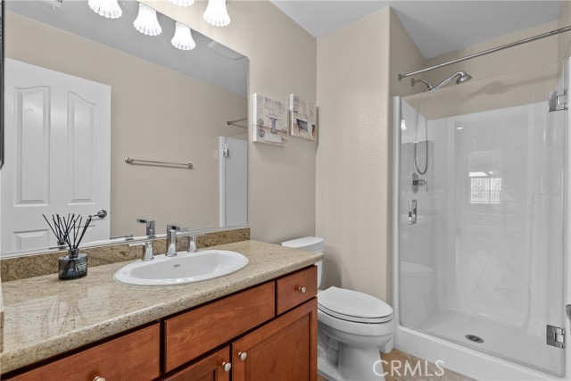 Discover elevated everyday living in this stunning 5-bedroom, 3-bath free-standing single-family residence offering 2,290 square feet of thoughtfully designed space in one of Valencia’s most desirable neighborhoods. This is a true SFR with no shared walls—not a townhouse—providing privacy and independence rarely found at this price point. Bright, airy interiors welcome you with elegant chandeliers, upgraded lighting, and a seamless blend of style and comfort. It’s hard to tell this home has even been lived in—it is that impeccably clean and lovingly maintained. The kitchen is equipped with a newer oven, making it both beautiful and functional for daily living and entertaining. The versatile floor plan features a convenient ground-floor bedroom and full bath—perfect for guests, multigenerational living, or a private home office. Situated on a prime end-corner location, the home enjoys only one neighboring property and offers unobstructed views from the back of the house. Step outside to your own backyard retreat, ideal for relaxing evenings or lively gatherings. The nearby park, clubhouse, and association amenities close by, with abundant guest parking for visitors. Scenic walking paths, parks, schools, and community amenities are just moments from your doorstep. Car enthusiasts and families alike will appreciate the two spacious one-car garages—each vehicle enjoys its own private “cocoon” with generous space all around, helping prevent door dings and adding everyday convenience. The owned (not leased) solar system provides long-term energy savings and peace of mind. With its rare privacy, premium upgrades, prime location, and pristine condition, this home offers the perfect balance of tranquility, modern efficiency, and everyday convenience.