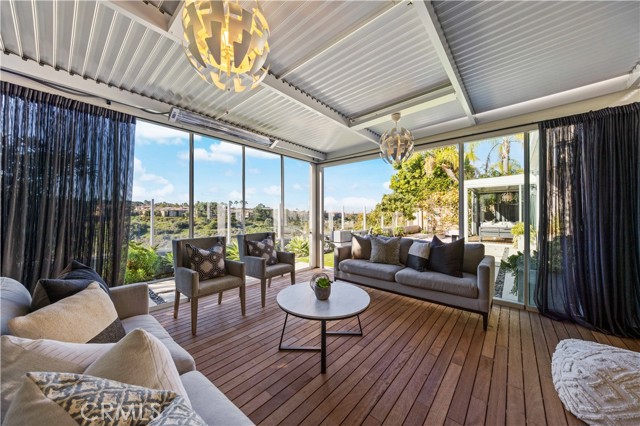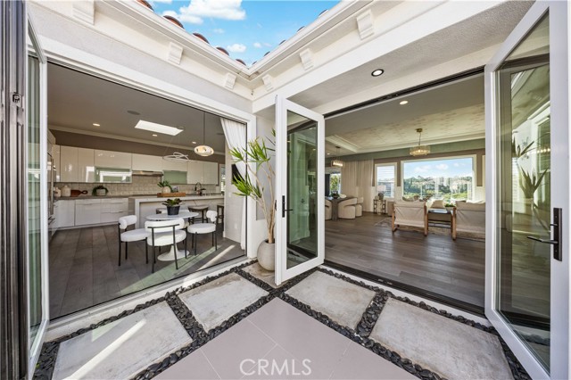2019 fully remodeled, this single-level luxury residence is located in the prestigious, guard-gated Bonita Canyon community of Newport Beach. This exceptional home has been structurally transformed, with seven interior walls removed to create an expansive, open-concept layout that blends modern elegance with functionality. To support this architectural reimagining, new steel beams were expertly installed, ensuring both durability and design integrity. Completely updated plumbing, piping, and electrical throughout. The home is bathed in natural light, thanks to the addition of 5 skylights—bringing the total to 6—strategically placed to enhance the home's bright, airy atmosphere. All plumbing and piping throughout the home have been completely replaced, offering peace of mind and long-term reliability. Designed for effortless indoor-outdoor living, the home features three oversized folding glass doors—in the breakfast nook, family room, and primary suite— opening to tranquil canyon, city light views and courtyard. The chef’s kitchen is equipped with a premium Sub-Zero double French door refrigerator, wine-frige and each bedroom and the garage feature custom California Closets built-ins for optimal storage and hige-end inteior finish. The entire home is powered by a full Savant smart system—giving you control of lights, TVs and security from your phone. Additional smart features include Curtain Remote Controls, Smart Toilets, e-lock with fingerprint access at front gate, Garage MyQ Remote Control, Water Purifier, fully paid Solar Panels, and a Tesla Car Charger. The primary living room, bedroom, and bathroom lighting fixtures have been updated with contemporary designs. Two new glass-enclosed patios with integrated heaters and curtains extend the living space outdoors, offering elegant, year-round entertaining options. Home office can be converted to #4 bedroom if needed. 2 newly built-out patios adding extra appr 500SF living space. Located minutes from world-renowned Fashion Island and major freeways including the 405, 73, 55, and 22, this home offers both unmatched convenience and privacy. With the cool ocean breeze flowing through Bonita Canyon, air conditioning is rarely needed—but always available for your comfort. Don't miss your opporunity to this rare single level home offering combines extensive structural upgrades, luxury finishes, and smart innovation in one of Newport Beach’s most desirable communities.