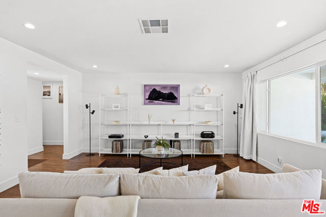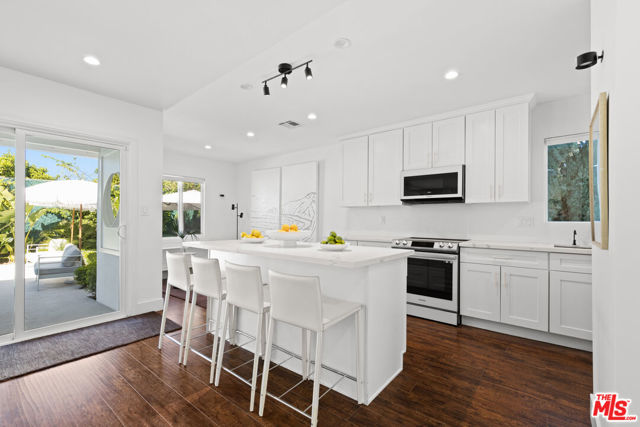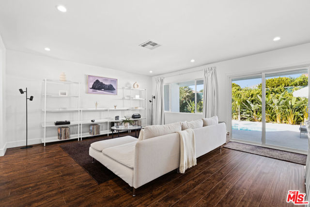 Located in a quiet, sought-after Winnetka neighborhood, this immaculate 4-bedroom, 2-bathroom residence offers 1,742 square feet of meticulously remodeled, open-concept living space on a generous 6,000 square foot lot. From the moment you enter, the sunlit interior impresses with elegant dark wood laminate flooring, recessed LED lighting, and dual-pane windows that create a bright, airy atmosphere. Within the same breath, the kitchen features custom shaker cabinetry, a massive waterfall-edge quartz center island with breakfast bar seating, and premium stainless steel appliances including a new induction technology range and built-in microwave. Both bathrooms have been fully transformed with quartz-topped vanities and designer microcement tile, while the primary suite offers a luxurious walk-in shower with a built-in bench and custom glass enclosure. The wood paneled pool-table recreation room was previously used by the sellers as a sonically treated professional grade recording studio (many grammy nominated tracks were recorded here!), and all the sound proofing remains intact making it perfect for someone in film/tv looking for a great space for their home studio. Step out through the sliding glass doors to discover a private, resort-style backyard oasis designed for the ultimate California lifestyle and entertaining with your family and friends. This low-maintenance retreat features a sparkling free-form swimming pool and spa, a modern white pergola with an integrated fire feature. Or choose the second zen zone, out front yet within the walls of privacy hedging a secondary gravel-scaped conversation area with lemon tree and lounging area. The sellers completed major upgrades including a new roof in 2023, plus a full pool renovation with new plaster and tile, conversion to saltwater, and a brand-new $5,000 pool heating system. Additional upgrades include copper plumbing and Tesla solar panels, providing both efficiency and peace of mind. Perfectly situated near Pierce College and the world-class shopping and dining of Warner Center, this home offers easy access to the 101 Freeway and the Orange Line for effortless commuting.