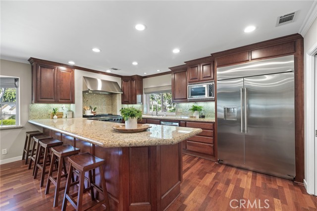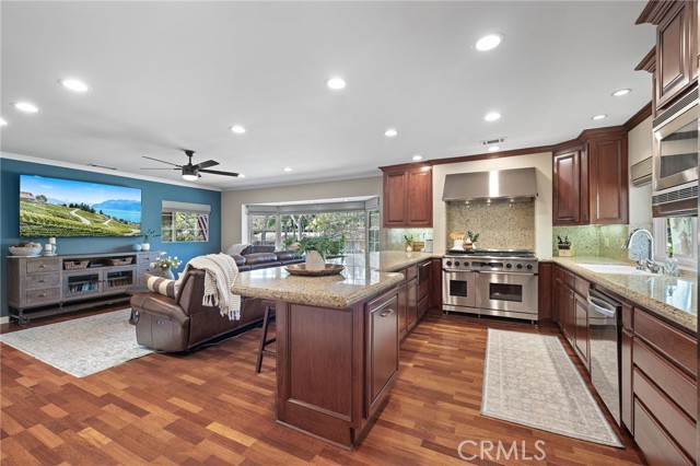 An Entertainer's Delight, don't miss this incredible opportunity! 660 Green Acre Drive offers an ~3059 sq ft single-story main residence plus a permitted ~586 sq ft detached ADU with private entrance on an expansive, park-like 20,700 sq ft lot. The thoughtfully designed main home features two separate wings; the first with 3 generously sized bedrooms and 2 bathrooms, anchored by a serene primary suite with custom walk-in closet, a spa-inspired bath boasting dual vanities and shower heads. The private guest wing offers an ensuite bedroom with direct driveway access, as well as indoor laundry room and abundant pantry and storage. At the heart of this resort-like dream home, the chef’s kitchen features high-end appliances, a six-burner range, a reverse osmosis drinking water system, granite countertops, and a spacious peninsula with seating for up to six. Each space of the home flows effortlessly into the next, thoughtfully laid out with warmth, intention, and ease - grand yet intimate, providing the perfect setting for gatherings or comfortable everyday living. The formal dining room offers an elegant space for hosting and sits adjacent to the spacious living room, boasting vaulted wood-planked ceilings and a dramatic stone fireplace wall with built-in shelving and accent lighting to create a warm yet striking focal point. Natural light filters through a wall of gorgeous windows and french doors leading to an expansive covered patio complete with built-in BBQ, mini fridge, and utility sink—perfect for year-round entertaining and large gatherings. The beautifully landscaped and curated backyard features a generous lawn, mature shade trees, tastefully appointed garden and hardscape areas, and a separate workshop/storage space. A 3-car garage with additional laundry hookups and a pass-through bar top seating area complete this entertainer's delight. Privately positioned at the rear, the detached one-bedroom ADU feels like its own retreat, offering vaulted ceilings, abundant natural light, a spacious living area, kitchenette with modern appliances and bar seating, large bath, and walk-in closet—ideal for guests or rental income. Located near plenty of shopping and dining, the Fullerton Loop biking, hiking, and equestrian trails, as well as St. Jude Hospital. Zoned for highly rated Laguna Road Elementary, Parks Jr. High, and Sunny Hills High School. Rarely does a property of this caliber come to market—this one-of-a-kind home is a must-see!