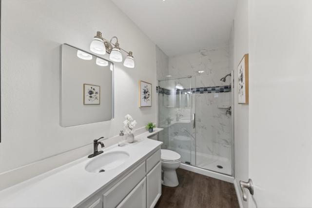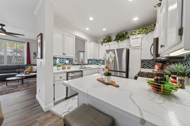 Beautifully remodeled four bedroom townhouse in the highly desirable Amber Grove community. This rare and spacious floor plan offers an open-concept layout filled with abundant natural light and thoughtfully curated high-end finishes throughout. Gourmet kitchen showcases quartz countertops, stainless steel appliances with a gas range, ample cabinetry, and recessed lighting, perfectly designed for both everyday living and entertaining. The expansive living and dining area features soaring ceilings and a cozy fireplace, creating a warm and inviting atmosphere. The primary suite serves as a private retreat with a walk-in closet and a spa-inspired bathroom. Additional highlights include remodeled bathrooms, ground floor bedroom, crown molding, double-pane windows, in-unit laundry, a private patio ideal for outdoor gatherings, and an attached two car garage. Residents enjoy access to the community pool and spa. Ideally located near VTA and Highways 87, 85, and 101 for convenient Silicon Valley commuting. Just a short stroll to Waterford Park and minutes from shopping, dining, and grocery stores. A rare opportunity to own one of the larger units in the community.. this is not to be missed.