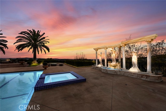 Exquisite Tuscan Estate with Unrivaled Views in Yorba Linda. Welcome to one of Yorba Linda’s most luxurious estates—an approximately 6,000 sq. ft. Tuscan-inspired masterpiece, set on 1.15 acres in the prestigious Mount St. Antonio Hills. With nearly 1,000 sq. ft. of newly added space and a meticulous renovation, this estate blends timeless elegance with modern sophistication. Step inside to soaring cathedral ceilings, brand-new oversized windows, and multiple sliding glass doors that fill the home with natural light and seamlessly connect indoor living to the stunning outdoor oasis. As you step outside, you’re immediately greeted by breathtaking 270-degree panoramic views across hills, city lights, and sunsets. This cinematic outdoor sanctuary is designed for awe and inspiration—perfect for hosting lavish gatherings or enjoying quiet mornings. The resort-style grounds are an entertainer’s dream: a sparkling pool and spa, covered outdoor kitchen and barbecue area, massive RV parking, lush gardens, and five towering palm trees create an unforgettable ambiance. The elegant Roman sculptures evoke the grandeur of the Venetian, blending art and architecture. Inside, the home features 5 spacious bedrooms, 4 designer bathrooms, a main-level office, and a private mother-in-law suite. The luxurious primary suite offers a private loft, spa-like ensuite, and view balcony—the perfect retreat. The chef’s kitchen is a showstopper: custom cabinetry with oversized drawers, premium Wolf appliances, built-in coffee system, Dacor refrigerator, and central vacuum. A separate, fully equipped gym structure provides a private space for wellness just steps away from the main house. Additional highlights include: 4-car garage with epoxy floors and custom cabinetry Egyptian marble columns and fireplaces, radiant heated floors Smart home technology: motorized blinds, security cameras, smart A/C, roof/fire sprinklers Fully paid solar system Lush landscaping with rose garden and fruit orchard (lemon, orange, avocado, cherry, fig, kumquat, dragon fruit & more) Greenhouse for year-round homegrown vegetables This is not just a home—it’s a private resort, a personal retreat, and a lifestyle statement. Opportunities like this are rare. Schedule your private tour today and experience the magic for yourself.