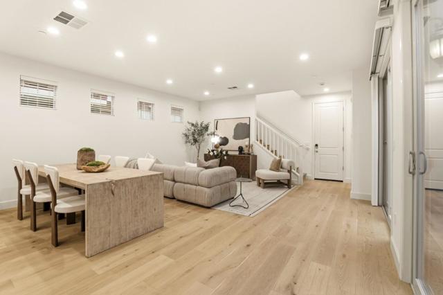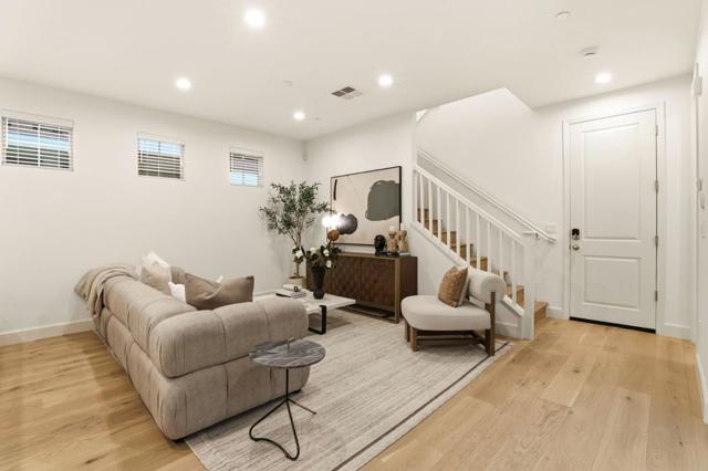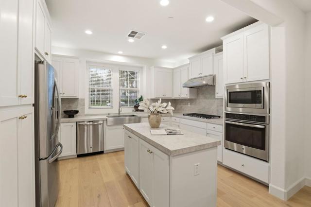 Built in 2015 and impeccably maintained, this 3 bedroom, 2.5 bath home offers 1,762 sq ft of thoughtfully designed living space in the heart of Santa Clara. The open-concept layout features new engineered hardwood flooring and fresh interior paint, creating a bright, modern feel ideal for everyday living and entertaining. The kitchen showcases white shaker cabinetry, new porcelain countertops, a center island, farmhouse sink, gas cooktop, and stainless steel appliances, flowing seamlessly into the dining and living areas. The expansive primary suite offers a spa-inspired bath with dual vanities, walk-in shower, soaking tub, and two walk-in closets. Additional highlights include fully owned solar, an attached two-car garage, second floor laundry room, and low HOA dues that include garbage fees, along with community amenities such as a pool, spa, BBQ area, and playground. Ideally located minutes from Apple, NVIDIA, Google, and Amazon, plus top private schools including Stratford School, Challenger School, The Harker School, and Monticello Academy. Style, efficiency, and prime Silicon Valley convenience in one exceptional home.