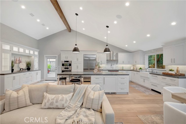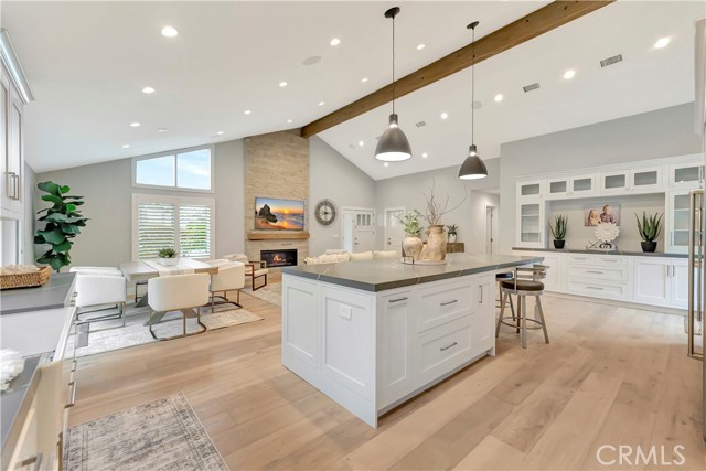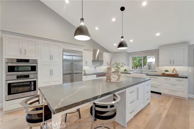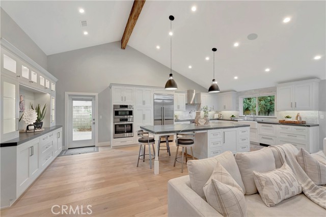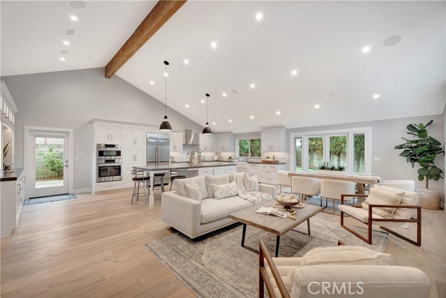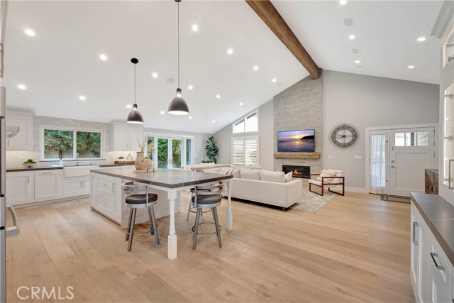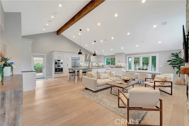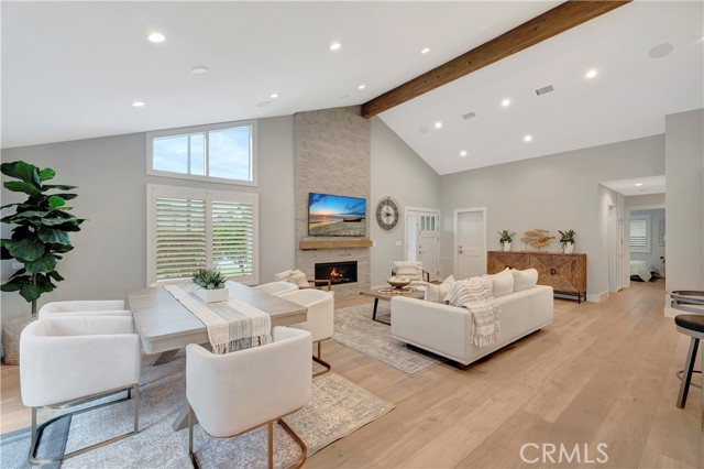 Fully remodeled in 2023, this stunning Huntington Beach home in the desirable Park Huntington community located at the end of a quiet interior cul-de-sac blends timeless design with modern luxury and high-end finishes throughout. Phenomenal open floorplan with vaulted ceilings and offers 3 bedrooms, 2 bathrooms, and approximately 1,494 square feet of thoughtfully upgraded living space! Rich hardwood flooring flows throughout the home, highlighting extensive interior and exterior upgrades. The curb appeal shines with custom James Hardie cement siding, a composition roof, updated windows, plantation shutters, and a powerful 5-ton air conditioning system for year-round comfort and energy efficiency. The chef’s kitchen is designed for both everyday living and entertaining, featuring premium appliances including a Wolf gas cooktop with professional vent hood, Bosch oven and microwave combo, Sub-Zero refrigerator, and Fisher & Paykel double dishwasher. Quartz countertops, a marble backsplash, farmhouse sink with touch faucet, built-in hutch, and a spacious center island with beverage refrigerator complete this exceptional space. Open living and dining areas create a warm and inviting atmosphere with a gas fireplace and ceiling surround sound, perfect for relaxing or hosting gatherings. Bedrooms feature custom built-in closets and ceiling fans, while the private primary suite includes integrated surround sound for a luxurious retreat. Spa-inspired bathrooms are beautifully finished in marble and travertine and include a roll-in shower and a classic cast iron soaking tub. Located in one of Huntington Beach’s most sought-after neighborhoods, this beautifully remodeled Park Huntington home offers coastal living, premium upgrades, and modern comfort in every detail. This turnkey property is move-in ready and ideally located just minutes from the beach, parks, shopping, and top-rated schools.