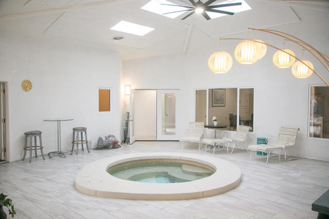Welcome to this one-of-a-kind 3-bedroom, 3.5-bath custom-built residence, perfectly blending modern luxury with thoughtful design. Every detail of this home has been newly remodeled to offer comfort, style, and functionality--creating the ultimate indoor-outdoor unique desert living experience.The heart of this home is its dramatic interior atrium, featuring a 15-person jacuzzi spa that serves as the focal point for relaxation and entertainment. This indoor-outdoor oasis adds an additional 1,000 sq. ft. of luxurious living space.NEW chef's kitchen with beautiful cabinetry, modern appliances, and sleek finishesNEWly renovated bathrooms with premium fixtures and tile workAll NEW exterior windows for abundant natural light and energy efficiencyNEW tile flooring throughout for a clean, contemporary aestheticSpectacular NEW atrium skylights that brighten and warm the central living areaNEW custom-built side security gates for added privacy and peace of mindThree NEW French doors opening to serene outdoor spacesCommercial-grade large electrical panel for durability and future expansionFreshly painted exterior and interior--move-in ready!Outdoor shower--perfect for cooling off after enjoying the outdoorsLow-maintenance desert landscaping in both front and backyardsSeparate laundry room with ample storage and functionalitySpacious bedrooms including a huge primary suite featuring a walk-in closet that feels like a boutiqueEach bedroom enjoys no shared walls for exceptional privacy and opens directly to the stunning atrium. One of the three bedrooms can easily serve as a private in-law suite with its own entrance.The expansive 13,000 sq. ft. double-long backyard offers endless possibilities--ideal for an ADU, pickleball court, pool or all three! Enjoy the freedom to tailor this space to your lifestyle needs.The finished two-car garage includes a dedicated storage room, perfect for tools, hobbies, or organization.Built to last, this home features 2x6 perimeter construction--providing superior durability, insulation, and longevity. It's a home designed for decades of enjoyment and peace of mind.Every inch of this property showcases quality, creativity, and care. From the luxurious spa atrium to the expansive backyard, this home is a true masterpiece.The neighboring property is also for sale. A one of a kind opportunity to own both if you are looking to expand your portfolio. Add a gate between the two and the options are limitless!
