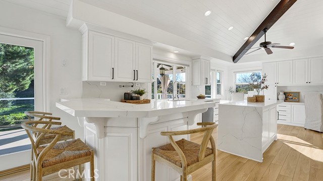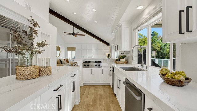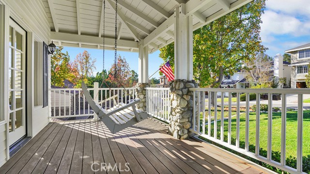With inviting curb appeal, seamless indoor-outdoor living, and a setting in The Village of Coto de Caza — Orange County’s most architecturally distinctive enclave—this home offers something increasingly rare: character with belonging. A generous front porch wrapped in beautiful decking—complete with a classic front porch swing—sets the stage for the warm atmosphere inside. Light Chaparral Oak–style flooring and fresh, airy finishes carry through the main level, where the living and dining spaces flow naturally toward a spacious kitchen featuring quartz-like counters, white cabinetry, a center island, Sub-Zero refrigeration, Viking cooktop, Bosch dishwasher, Kitchen-Aid double oven, and a built-in compactor. The vaulted, shiplap-detailed ceiling boasts exposed beams that continues into the family room and out to the expansive California Room, a true outdoor extension of the home with dual heaters, a ceiling fan, and room to gather and bbq while taking in views of the expansive nature. The backyard offers a broad lawn bordered by mature evergreen, oak and fruit trees; plenty of space for play, and convenient access to the spa just off the primary suite. All bedrooms are located downstairs, including a generous primary retreat, with space for a sitting area, indoor gym, or home office, and a dual-sink bath, stand-alone soaking tub, modern shower, and a double-entry walk-in closet. Additional highlights include dual HVAC systems, owned solar paired with a Tesla backup battery, charging ports for electric cars, a dedicated laundry room, remodeled bathrooms, and an oversized 2.5 car garage. With welcoming curb appeal, versatile indoor-outdoor living, and a peaceful location, this home offers a lifestyle that feels both comfortable and elevated. The neighborhood surrounding this home feels like a mountain retreat tucked under a canopy of mature trees. Custom homes, friendly pathways, and a quiet, storybook energy make this neighborhood a destination for those who value privacy, individuality, and a connection to nature. Here, life feels elevated, effortless, and uniquely your own, plus get all of the benefits of the gated Coto De Caza community included with your Village HOA dues.