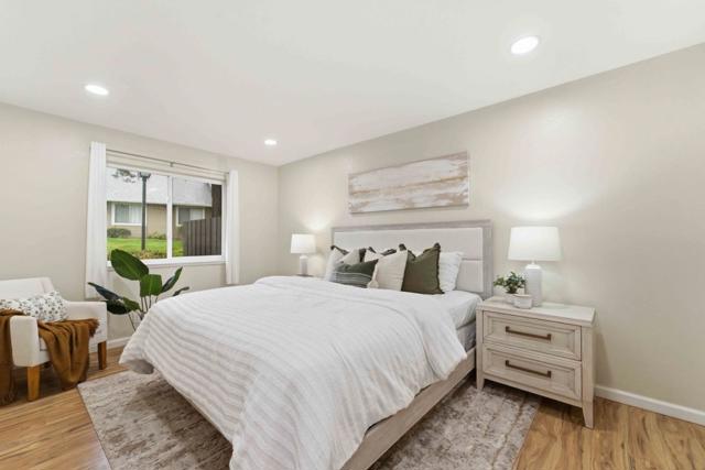 Charming 2-bed, 1-bath lower-floor condo with laminate floors, dual-pane windows, and in-unit private laundry. Enjoy a beautiful paver-stoned private backyard, one of the larger outdoor spaces in the community. Newly installed water heater for added peace of mind. Rare parking package includes a 2-car attached garage plus one additional assigned spot. The community features a swimming pool, lush grass lawns, and trees throughout, creating a serene and welcoming atmosphere. Unbeatable location with quick access to Highways 101, 280, 680, and 87 and steps from the Coyote Creek Trail. Minutes from San Jose State University, downtown San Jose, Eastridge Mall, Costco, Target, The Plant Shopping Plaza, and Little Saigon District.