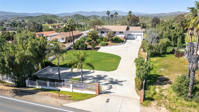 Welcome to this Extraordinary 1.35-acre Menifee Custom Estate! nestled in the Rolling Hills of Menifee, with endless Panoramic Views near Kabian Memorial Park. Completely remodeled and thoughtfully redesigned, this stunning modern country home blends luxury, space, and versatility - including a fully renovated attached ADU ideal for multi-generational living or rental income. This home boasts 5 spacious bedrooms, 4 fully renovated bathrooms, and an open floor plan designed to enhance light, creating a warm and inviting ambiance. * Master Bedroom Suite with custom renovated bathroom and walk-in closet • Expansive living room with updated electric fireplace • Brand-New Chef’s kitchen with elegant quartz countertops, new appliances, and bar area. • Indoor laundry room for convenience * New Flooring throughout and New recessed lighting * New Interior Paint, New Interior Doors, New Baseboards, New Light fixtures • Newly designed deck/patio off the master suite and living area with direct access to the backyard * Attached fully renovated ADU: • 2 bedrooms, 1 full bathroom • Kitchen and Oversized Living room with fireplace • Private entrance for added privacy * Upgrades & Features: • Extra-large 3-car garage with abundant storage • New AC system, dual-pane windows, and sliding doors for energy efficiency • New doors, fresh interior & exterior paint, and new flooring throughout • Fully renovated bathrooms & kitchen • New garage doors • Fully fenced with a wrought-iron gate and new remote opener? Outdoor Amenities: • Beautifully landscaped 1.35-acre lot, new grass in front yard, and citrus trees. * Oversized Concrete Driveway with space for 20+ cars • RV parking with 220V hookups * Property has custom-concrete work to have a large gathering with plenty of parking, and a Double Deck Pack Patio for entertaining * Panoramic views • Spacious yard perfect for entertaining and creating memories. The Lifestyle You Have Been Waiting For! Enjoy peaceful evenings on your private deck, host unforgettable gatherings, or create a comfortable multi-generational living setup with the attached ADU. With modern upgrades, expansive land, and breathtaking views, this Menifee estate truly has it all. Schedule a private viewing today and experience the home you’ve been waiting for!