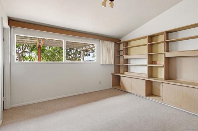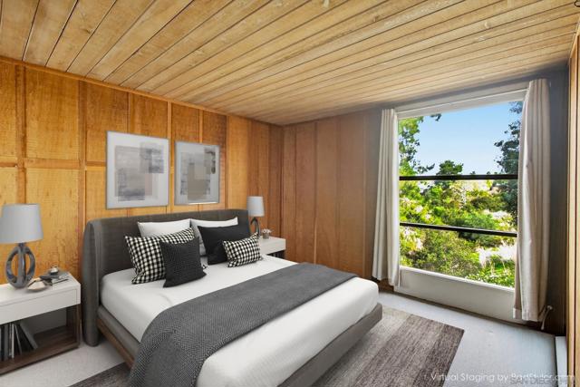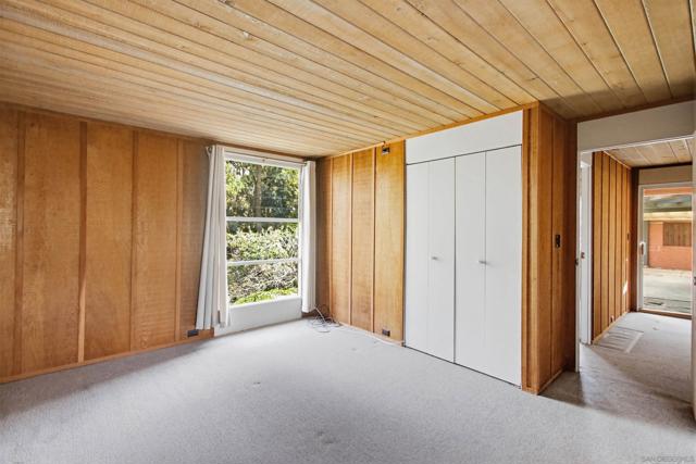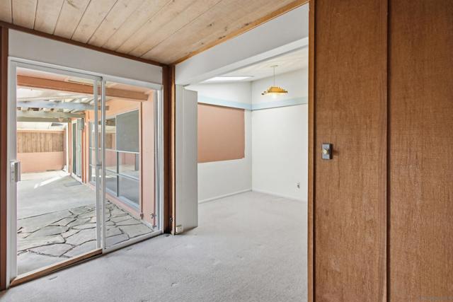 Views, Views, Views! Canyon-View home nestled in the heart of Serra Mesa’s coveted Mission Village neighborhood. This 5-bedroom, 2-bath residence offers approximately 1,620 sq. ft. of light-filled living space on a premium lot. Expansive floor-to-ceiling windows flood the interior with natural light, creating a seamless blend of indoor comfort and outdoor beauty. Designed to showcase the scenery, the open and airy layout provides incredible flexibility. The spacious living room features soaring cathedral ceilings, while the separate family room is anchored by a striking brick fireplace. Remove the existing divider to create a dramatic, open-concept great room—ideal for entertaining and everyday living. The vintage kitchen is full of character and ready for your personal touch. The versatile five-bedroom layout includes the option to convert one bedroom into a den, home office, or creative space. Skylights in both the bathroom and the office/bedroom enhance the home with additional natural light. Fully permitted additions designed by the previous owner—an architect—highlight quality redwood construction and rich wood paneling, adding warmth and architectural distinction throughout. Solar provides added energy efficiency and value. Conveniently located just minutes from Snapdragon Stadium, major freeways, shopping, dining, and all that San Diego has to offer, this is a rare opportunity to own a canyon-view property with character, flexibility, and endless potential in one of Serra Mesa’s most desirable neighborhoods.