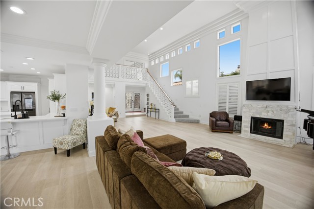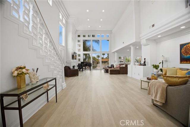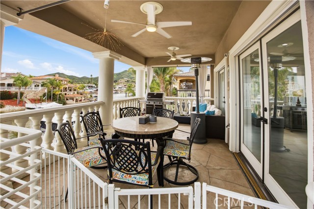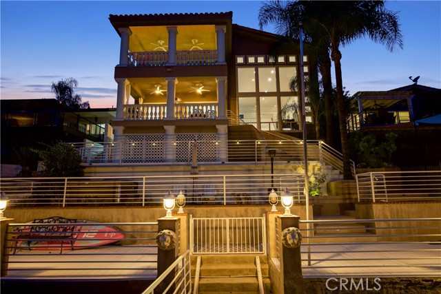 Behind the gates of Canyon Lake, where private beaches and sunset cruises define everyday life, sits a lakefront residence designed to capture light, water, and luxury in perfect harmony. “Casa Molte Finestre” lives up to its name, “House of Many Windows” frame shimmering lake views while soaring ceilings and architectural scale create a sense of openness rarely found in waterfront homes. The great room’s dramatic two-story fireplace anchors the space, flowing effortlessly into a refined chef’s kitchen adorned with quartz surfaces, black stainless-steel appliances, breakfast bar, pantry, and generous cabinetry with abundant storage — ideal for entertaining or everyday living. Upstairs, the primary suite becomes your personal sanctuary, featuring vaulted ceilings, a fireplace that creates warmth and intimacy, and a private balcony overlooking the lake. The spa-inspired bath evokes a luxury retreat, featuring a freestanding soaking tub, walk-in shower, dual vanities, and expansive dual walk-in closets designed with boutique-level elegance. Outside, enjoy the lake view from the terraces for sunset dinners and morning coffee. A newly added above-ground spa enhances the resort atmosphere, along with your private covered dock and boat lift, which places boating just steps from your door. A redesigned private courtyard sets an elegant tone upon arrival, with soaring palm trees and an attached three-car garage featuring new designer garage doors and a dedicated EV charging station — seamlessly integrating modern convenience with elevated curb appeal. Besides private beaches, Canyon Lake offers a resort lifestyle including a championship golf course, restaurants, parks, playgrounds, tennis, pickleball, and basketball courts, equestrian facilities, sports parks, and a private campground. This is not simply a lakefront home, it is a distinguished waterfront estate — a statement of luxury and lifestyle within one of Southern California’s most coveted gated communities.